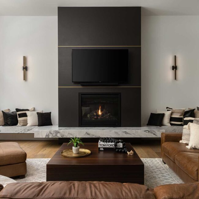 Interior Project | MultiRoom The Speakeasy Project This basement remodel masterfully blends vintage elegance with contemporary living. Inspired by the Roaring ’20s, the space features hidden doors, rich textures and