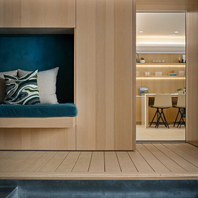 Interior Project | Single Space City Escape This private spa area offers an exquisite experience within the comforts of home. The newly crafted space features a dry sauna, steam shower,
