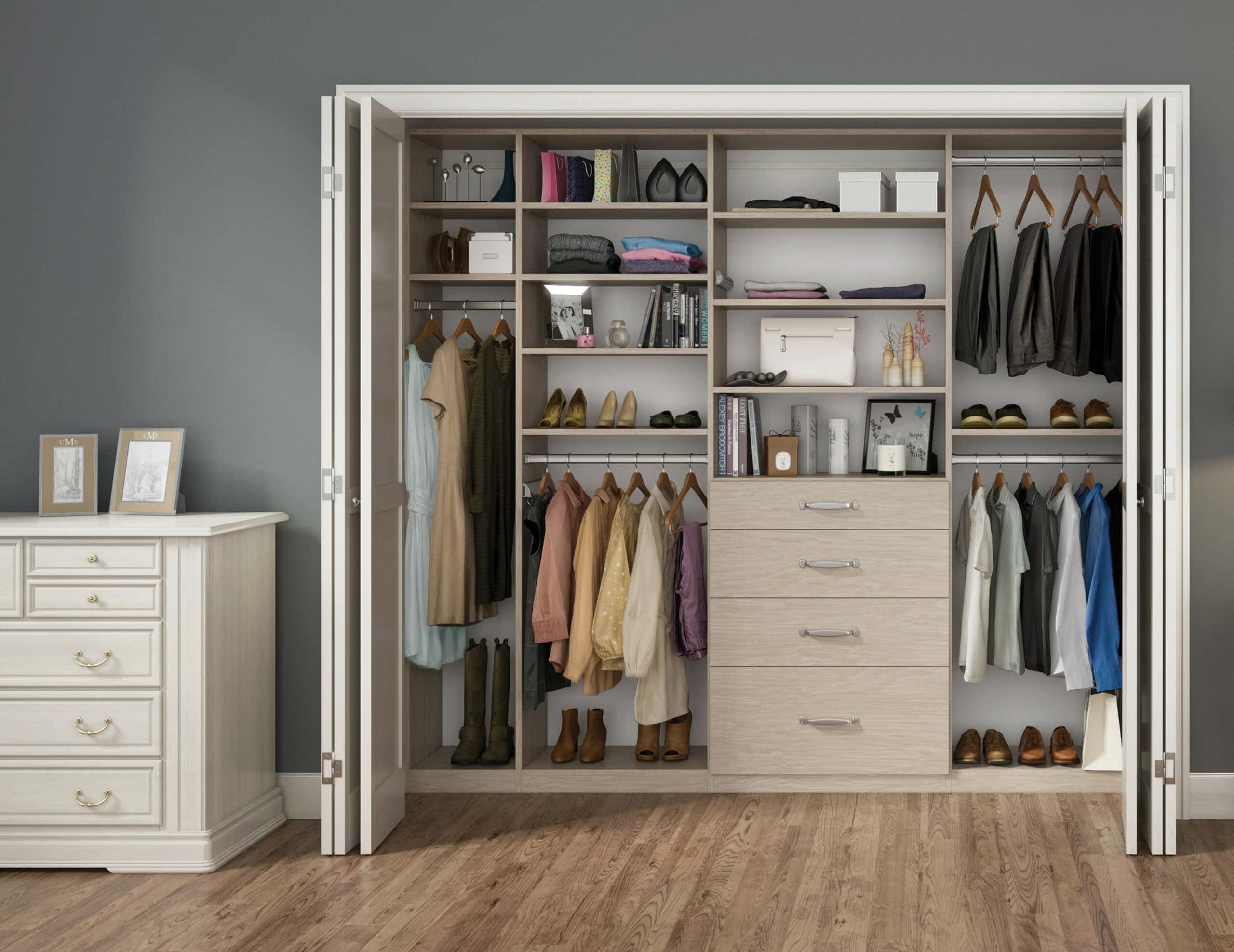 A custom solution for an existing closet can uncover its hidden potential. The art of organization reaches new levels with perfectly tailored solutions—especially ones that create a seamless look with the rest of the room.