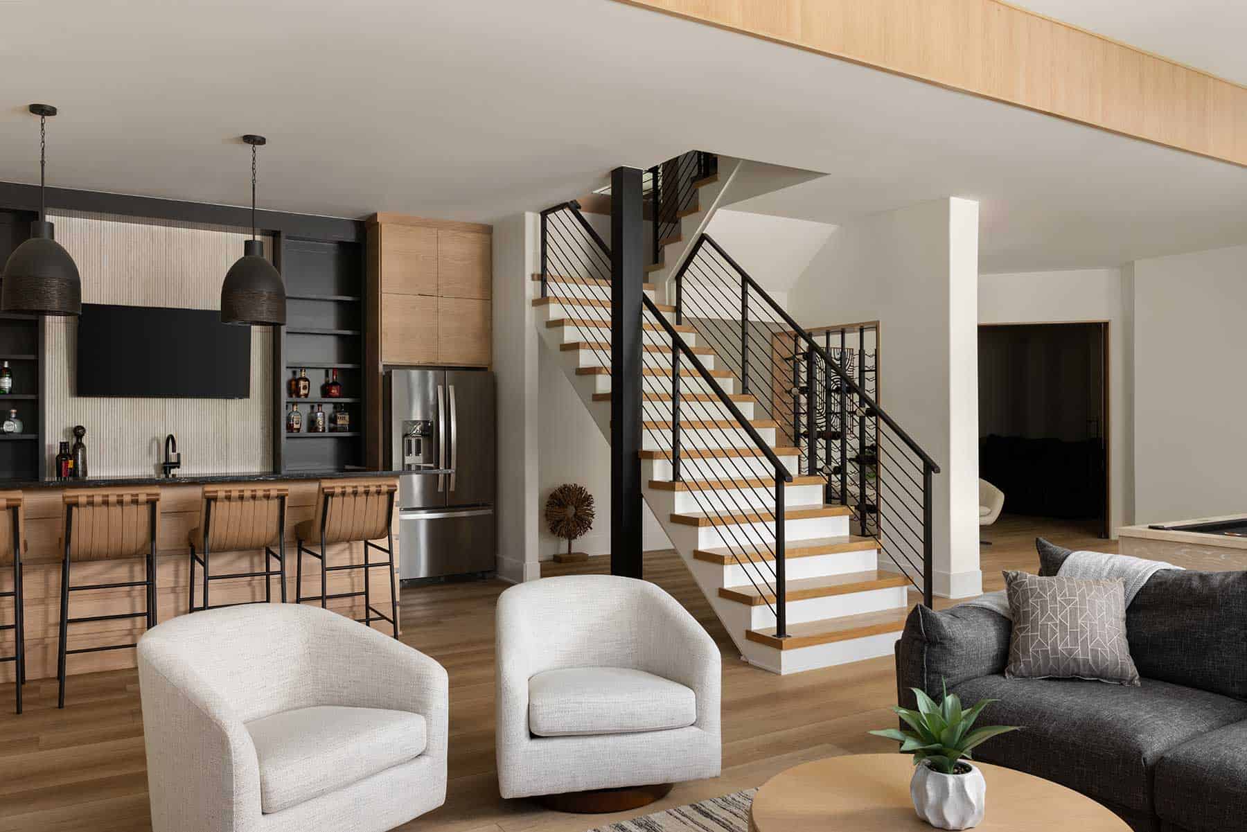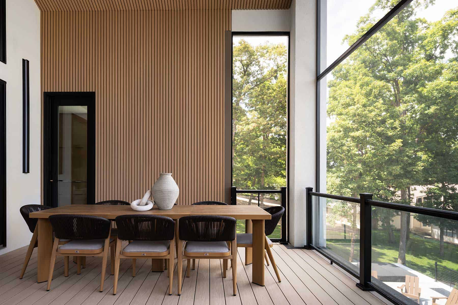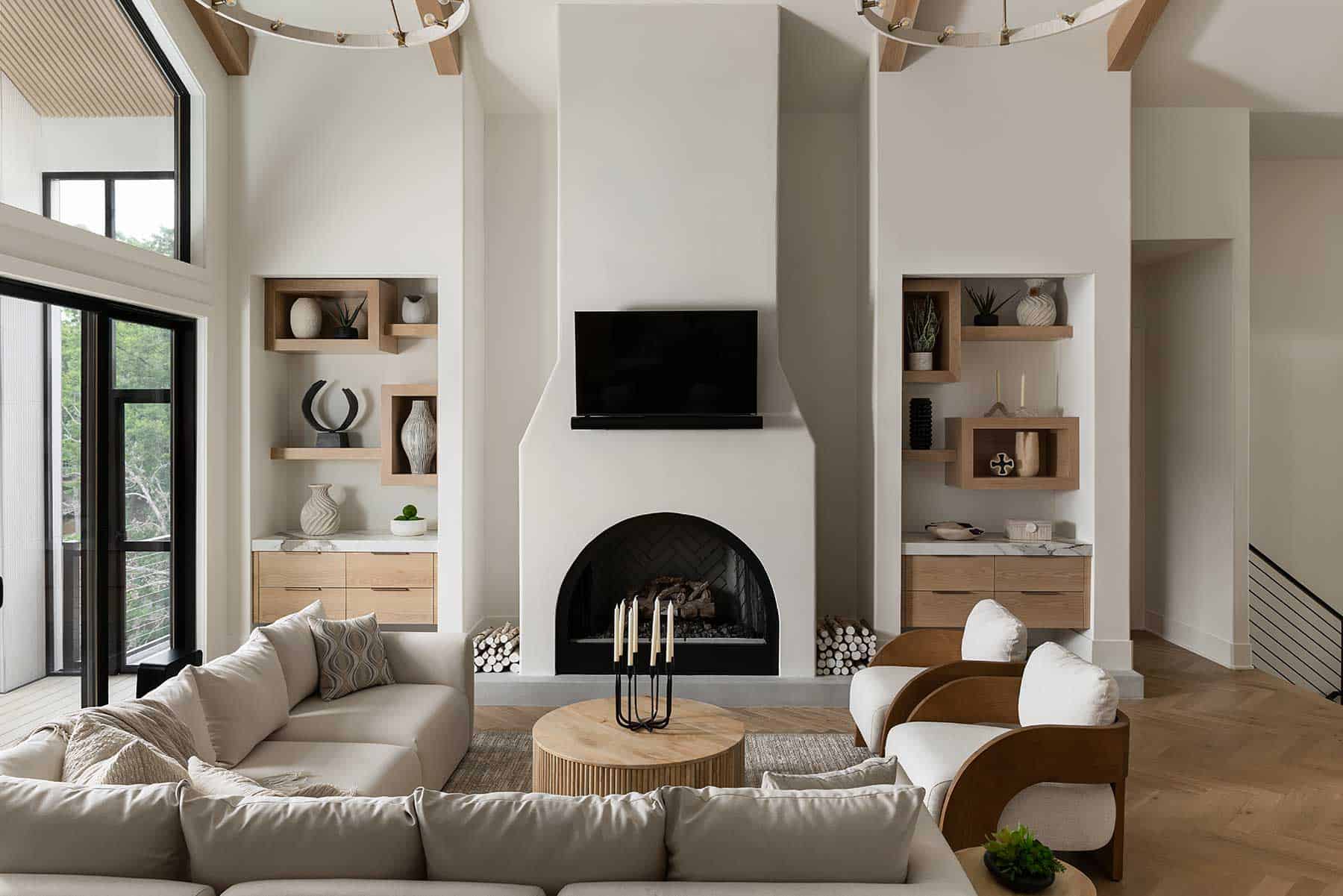 Instead, the Walkers looked further east—approximately 4,000 miles—for design inspiration. They both loved the clean finishes and neutral palettes common in Scandinavian design. Walker, who owns Walker Custom Homes, began working with architect Jeff Pfeifer of Viewpoint Residential Design to create a lakefront oasis that looks as if it were plucked directly from the heavily treed terrain of Sweden.