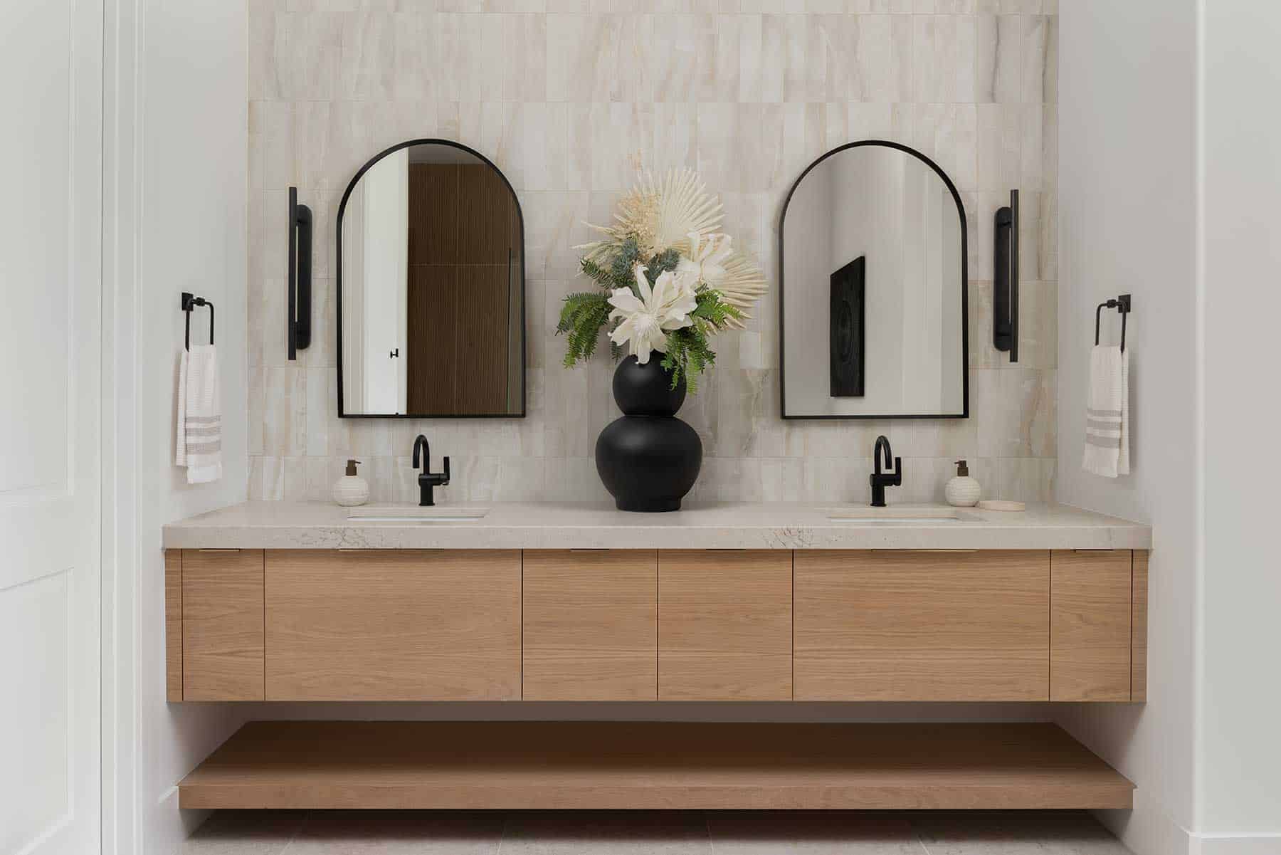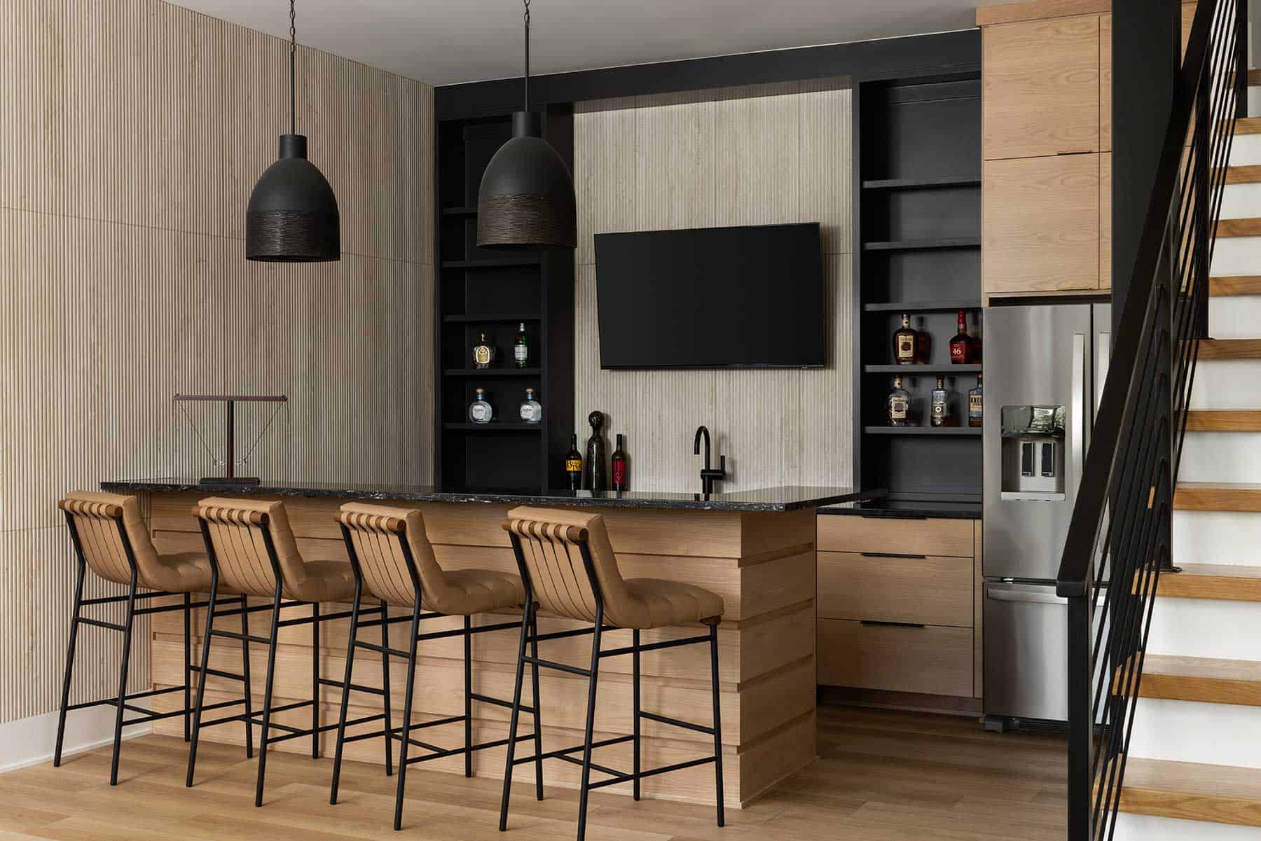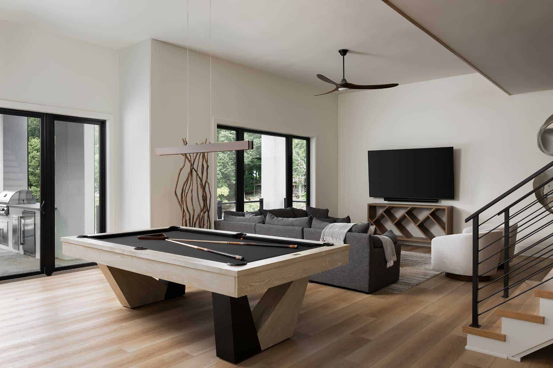 The Walkers frequently travel to the lake with their two kids, Layla (19) and Roman (15). That meant the home needed to balance its European-inspired aesthetic with all of the practical and entertaining-focused features standard in a lake home, including a full bar, wine room, theater room, and a pool that overlooks the surrounding cove.