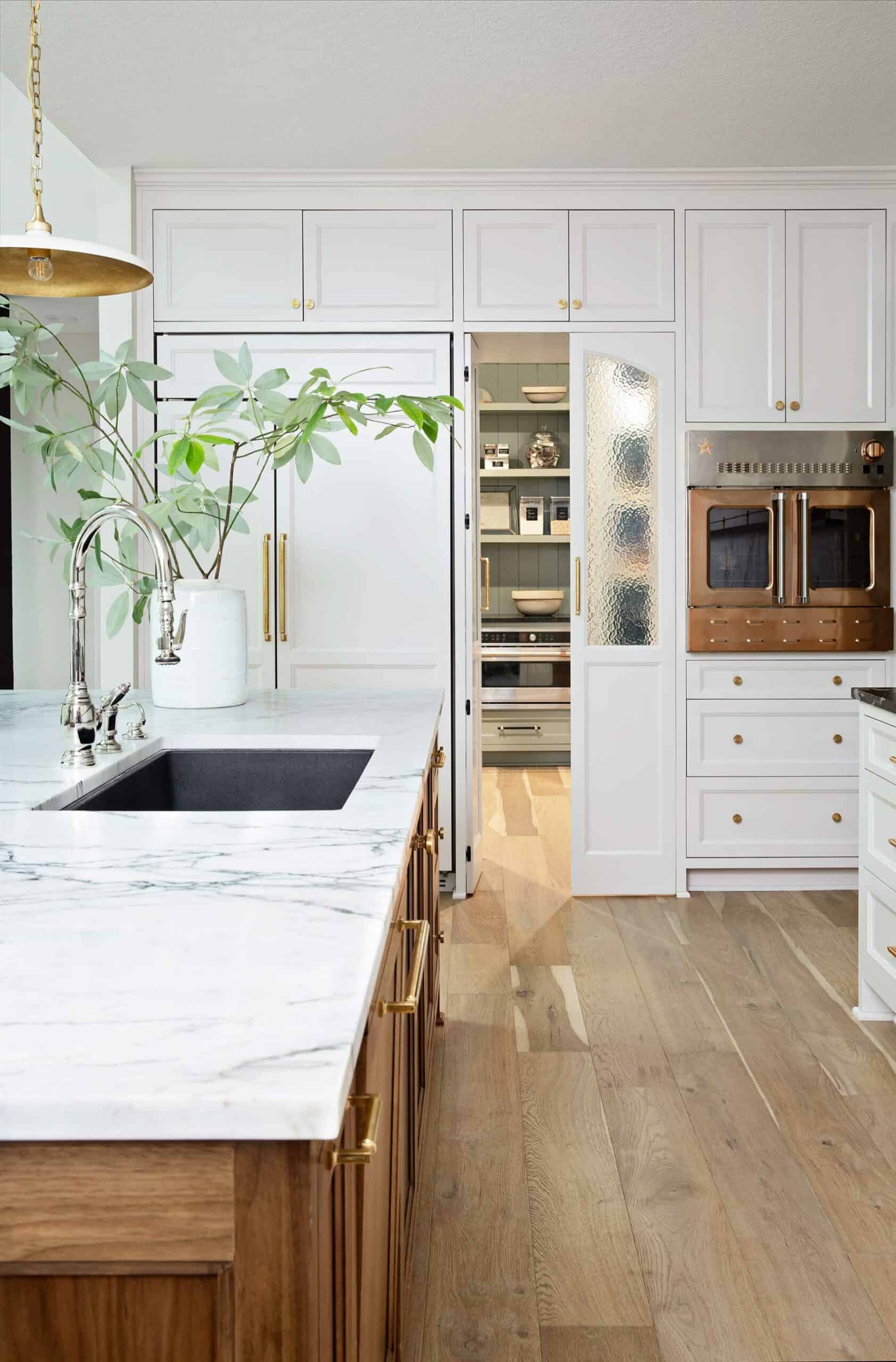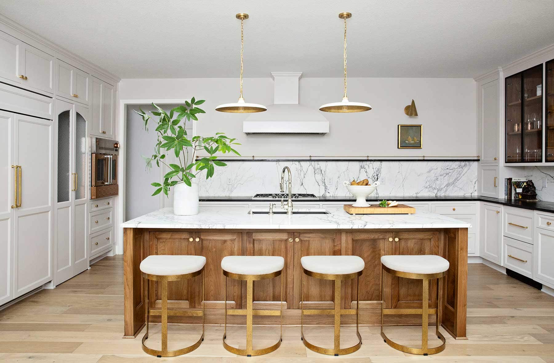 Another masterful redesign, the new custom kitchen is truly next-level. Originally, the design was so busy that it needed the most streamlining. Thus, the designers reconfigured it by moving around cabinets and appliances and adding a large pantry/baking room with an extra oven behind a set of double doors. The copper-front oven—the only item used from the prior design—melds beautifully with the surrounding wood tones. It’s now a kitchen design that even a Michelin-starred chef would be lucky to have.
