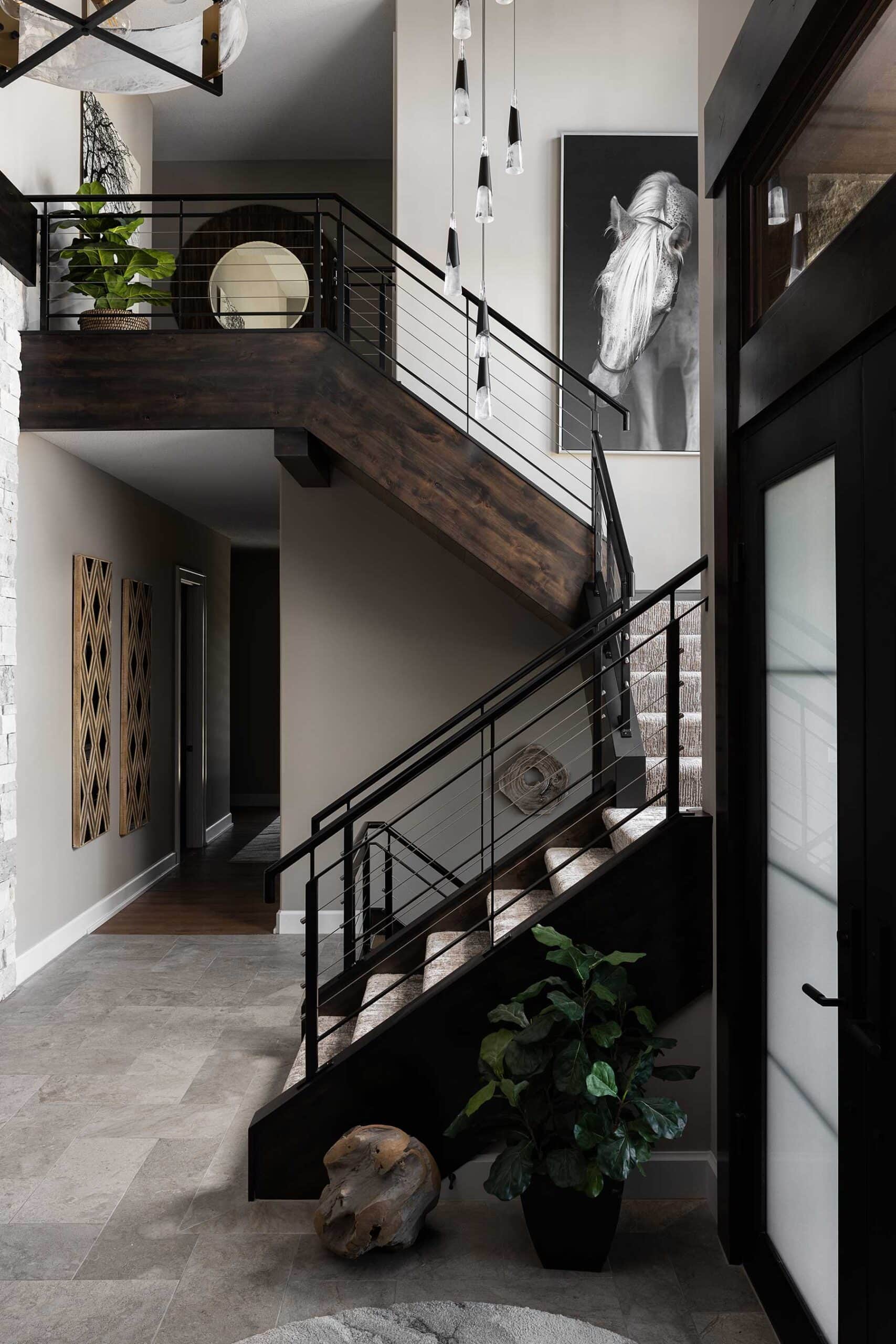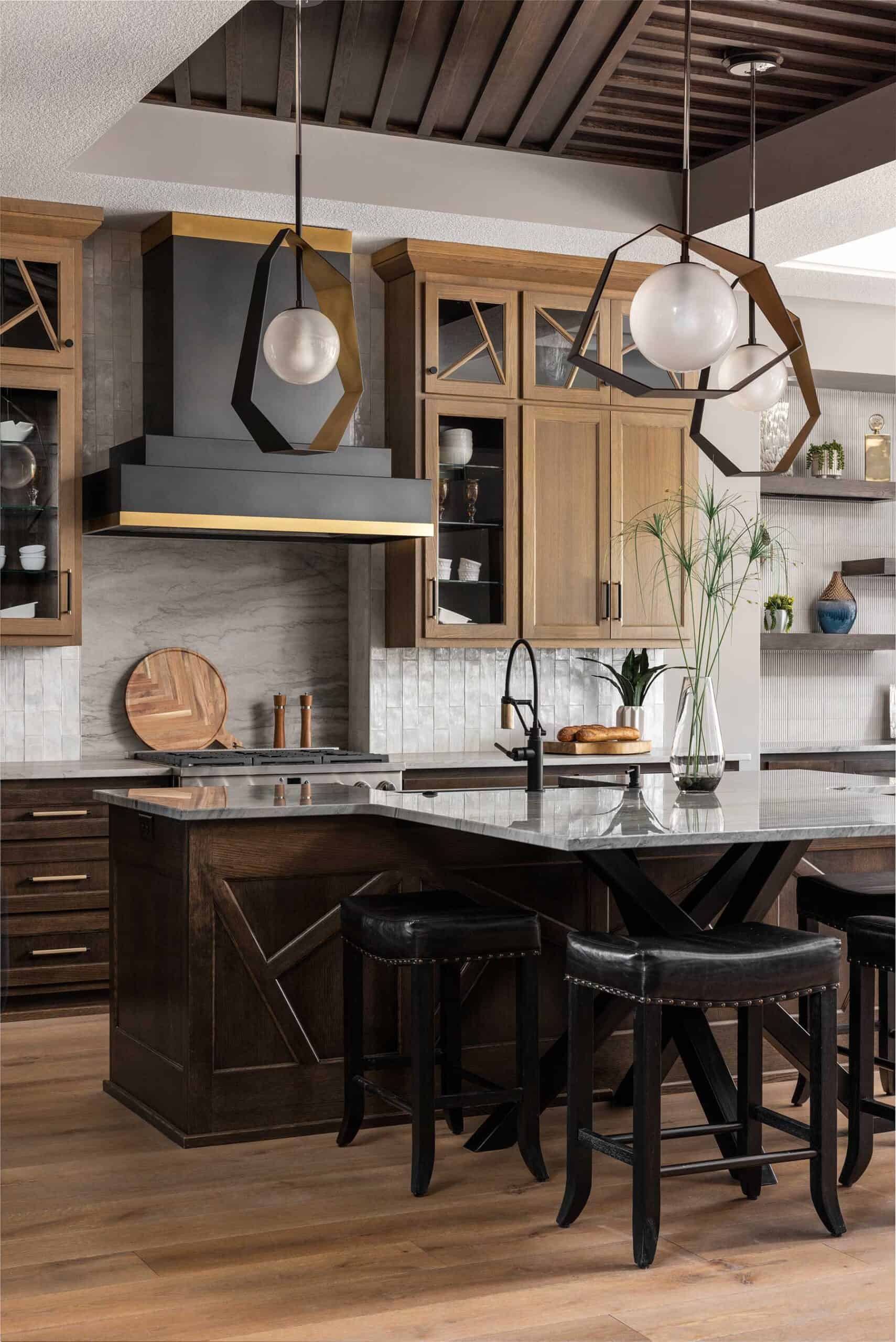 Set high on a wooded daylight lot within Lenexa’s Timber Rock community—Bruce’s highly successful first foray into real estate development—the residence commands attention with its inspired elevation and undeniable curb appeal. It impressed during its debut in the Spring 2025 Parade of Homes, earning both the Pick of the Parade Gold Award and First Place for Distinctive Plan & Design. The residence, however, is much more than an award-winning showpiece—it’s a layered story of architecture, landscape, and lifestyle woven together in seamless fashion.
