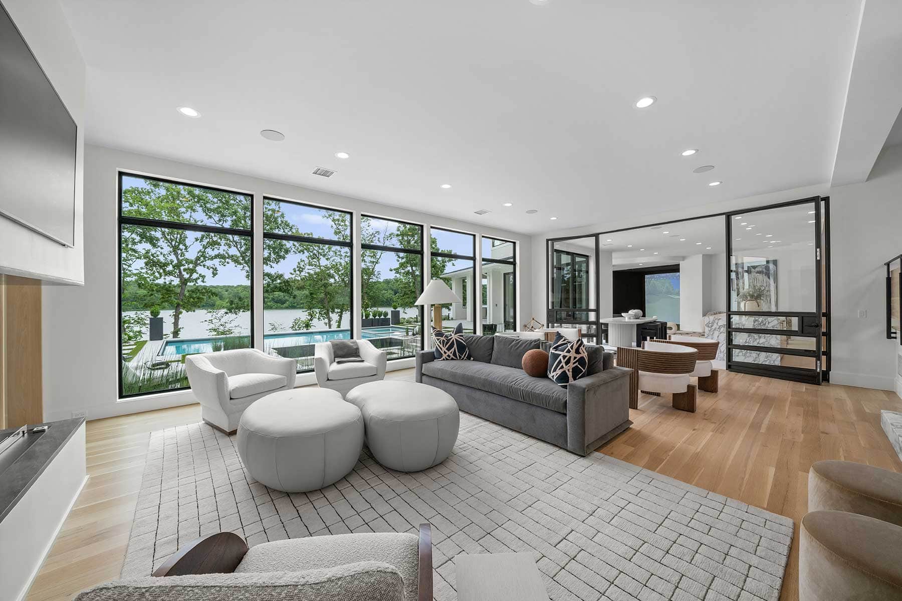 And, of course, large sliding doors lead directly to the patio, ensuring guests can easily transition from the indoor lounge to the lakeside lanai.
