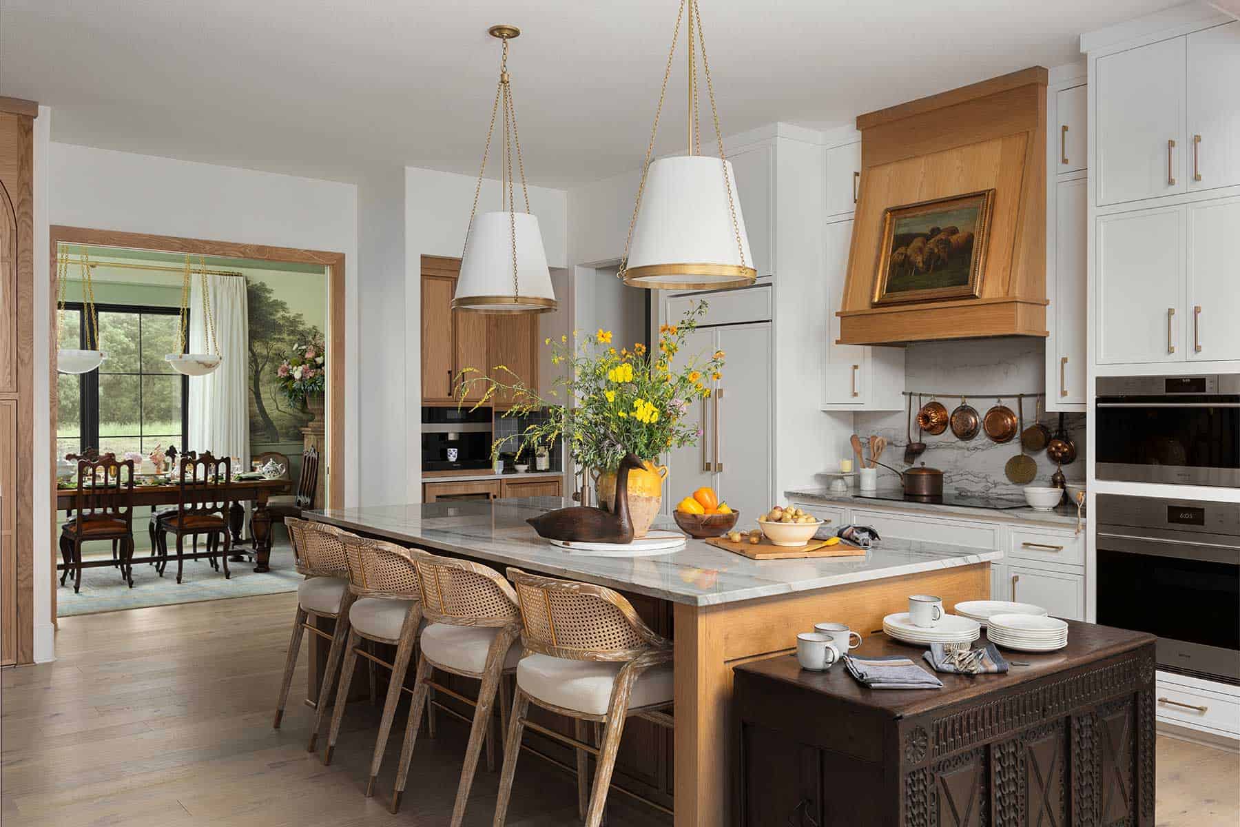 Laura liked the idea of a white kitchen, but Brown guided her toward a balanced approach with white oak in the case openings, hood, and island, still giving the overall impression of white.