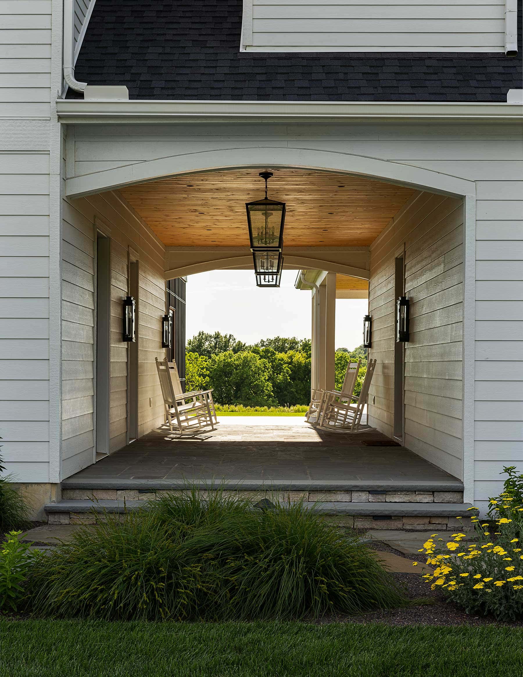 A modern farmhouse resonated with the theme of the land. The design looks as though a main house was added onto over the years, connected by a breezeway.
