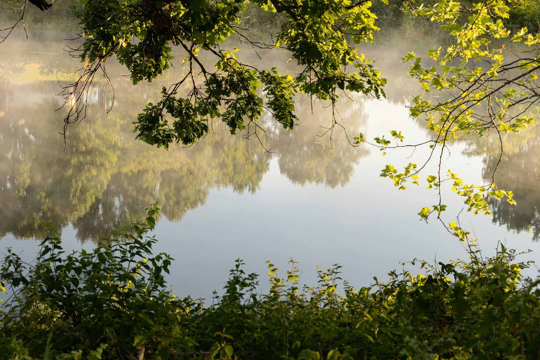 The design called for a formal entry lined with oak trees, an orderly approach from the road that transitions further up and back. The half-mile gravel drive is oriented toward certain views to take in the property’s many touch points, including a dock built on a stocked, spring-fed pond that will bring the pastime of fishing to life once again, and past apples, pears, peaches, and pawpaws planted on slopes, with electric fencing to help protect the saplings from munching critters. A pecan grove is planted down by the stream—in a “holler” as Bill calls it in country-speak. They will eventually add a solar field here to help power the farm.