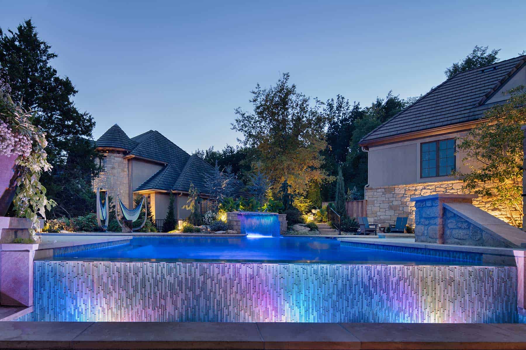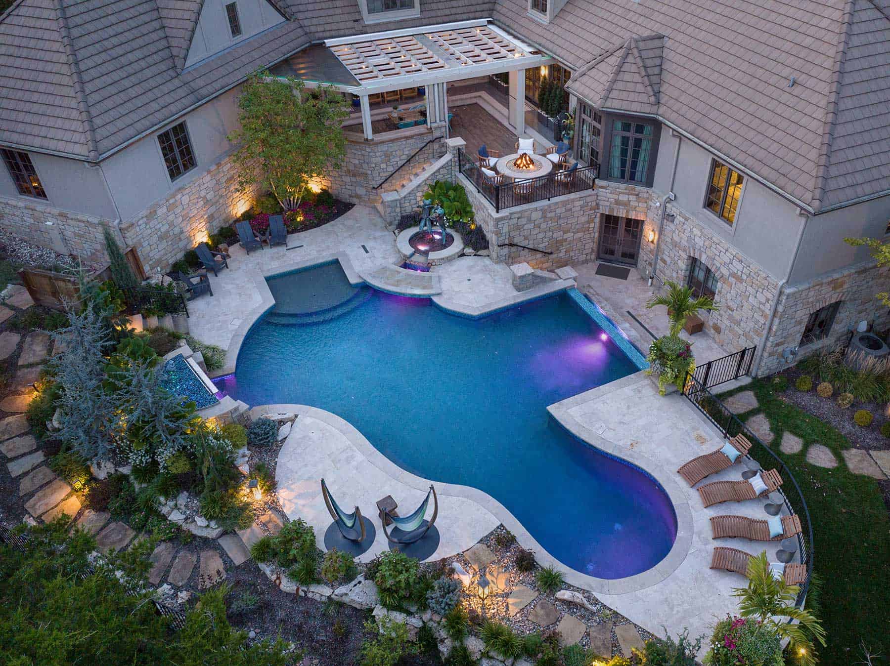 Determined to move forward, Sheldon turned to contractor Robert Bledsoe, the self-proclaimed “King of Backyard Bling,” who has built a reputation for precision and craftsmanship through more than 30 years of pool-building business. (He doesn’t call what he builds “pools” though—his projects are outdoor experiences.) At the time of Sheldon’s call, Bledsoe had been contemplating retirement. Sheldon’s request, however, was met with a simple response: “Let’s get ‘er done.”