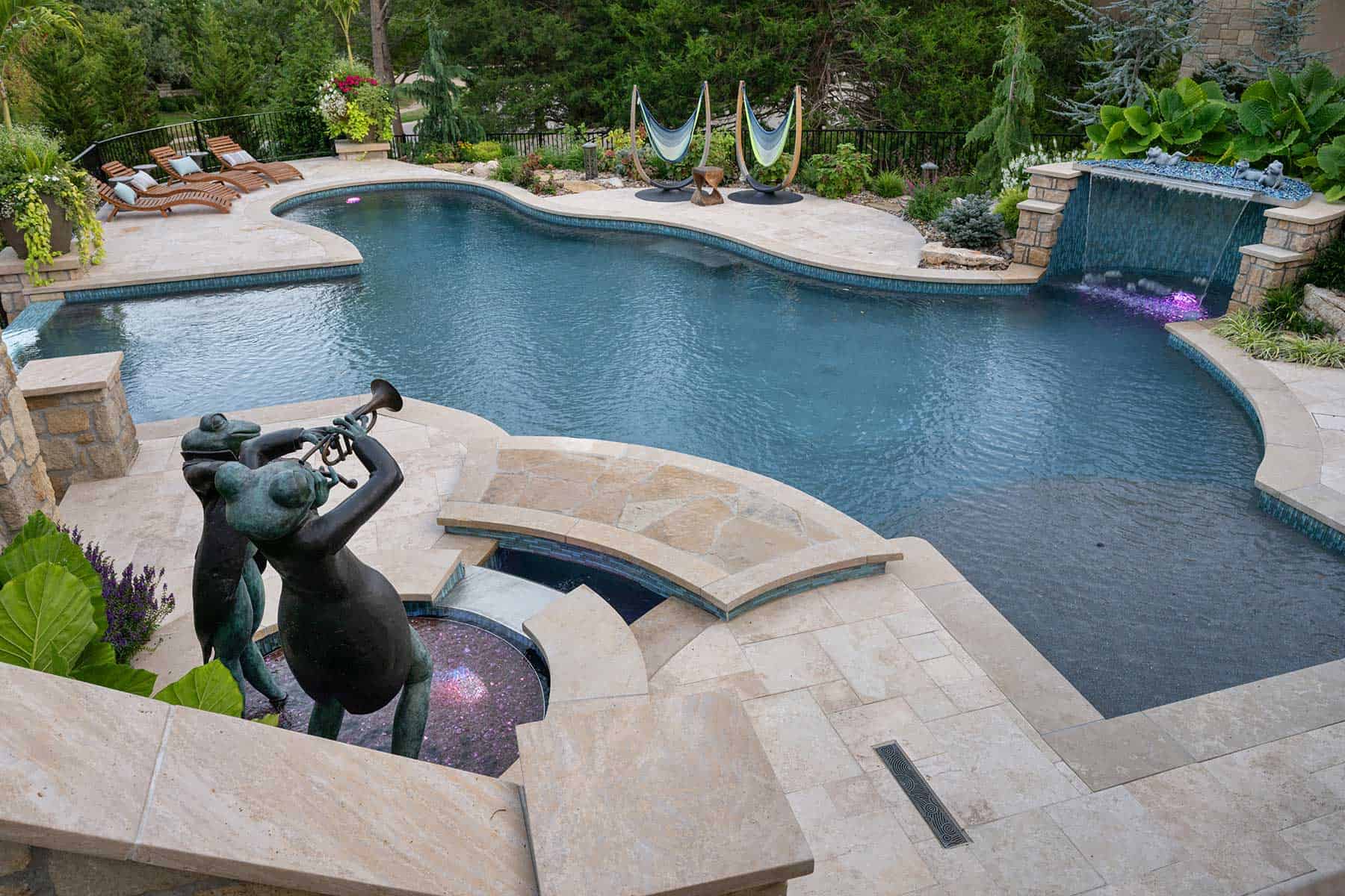 “I was interested in having some cool water features that would just be nice to look at or listen to even if we weren’t swimming in the pool,” Sheldon explains.