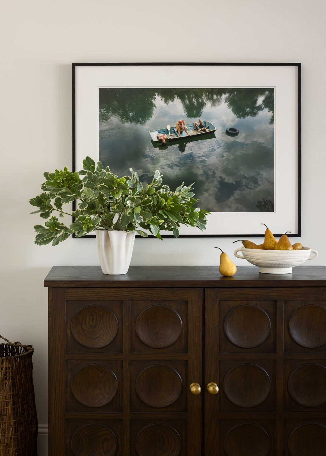 Throughout the house are echoes of the Fosters’ travels, details that turn design into biography. Ironwork in the office recalls a hotel in Myanmar. Textiles from Morocco soften the primary suite. The basement carries a chalet sensibility, layered with photographs of the French Alps. Cornwall, with its wild coastlines and mythic feel, inspired art in the kitchen and family spaces.