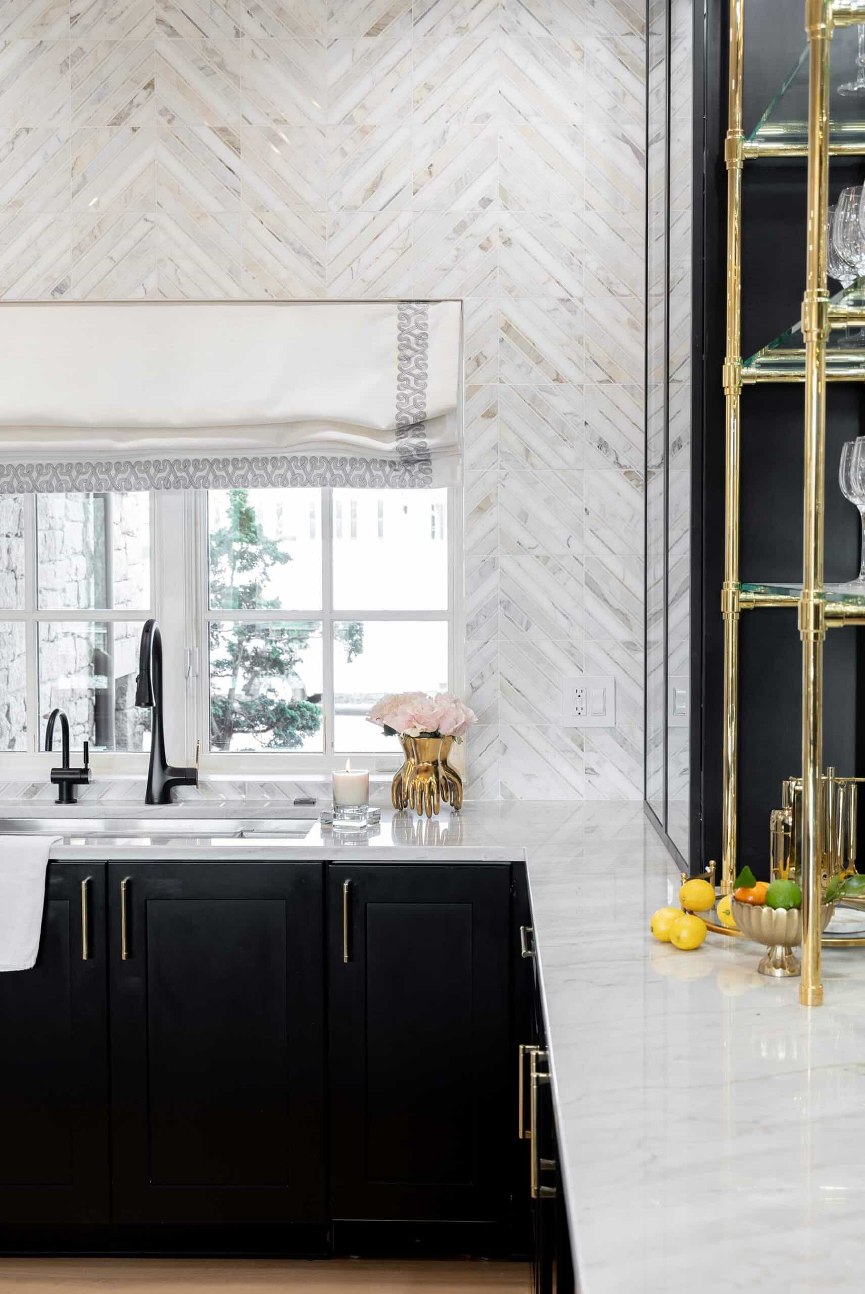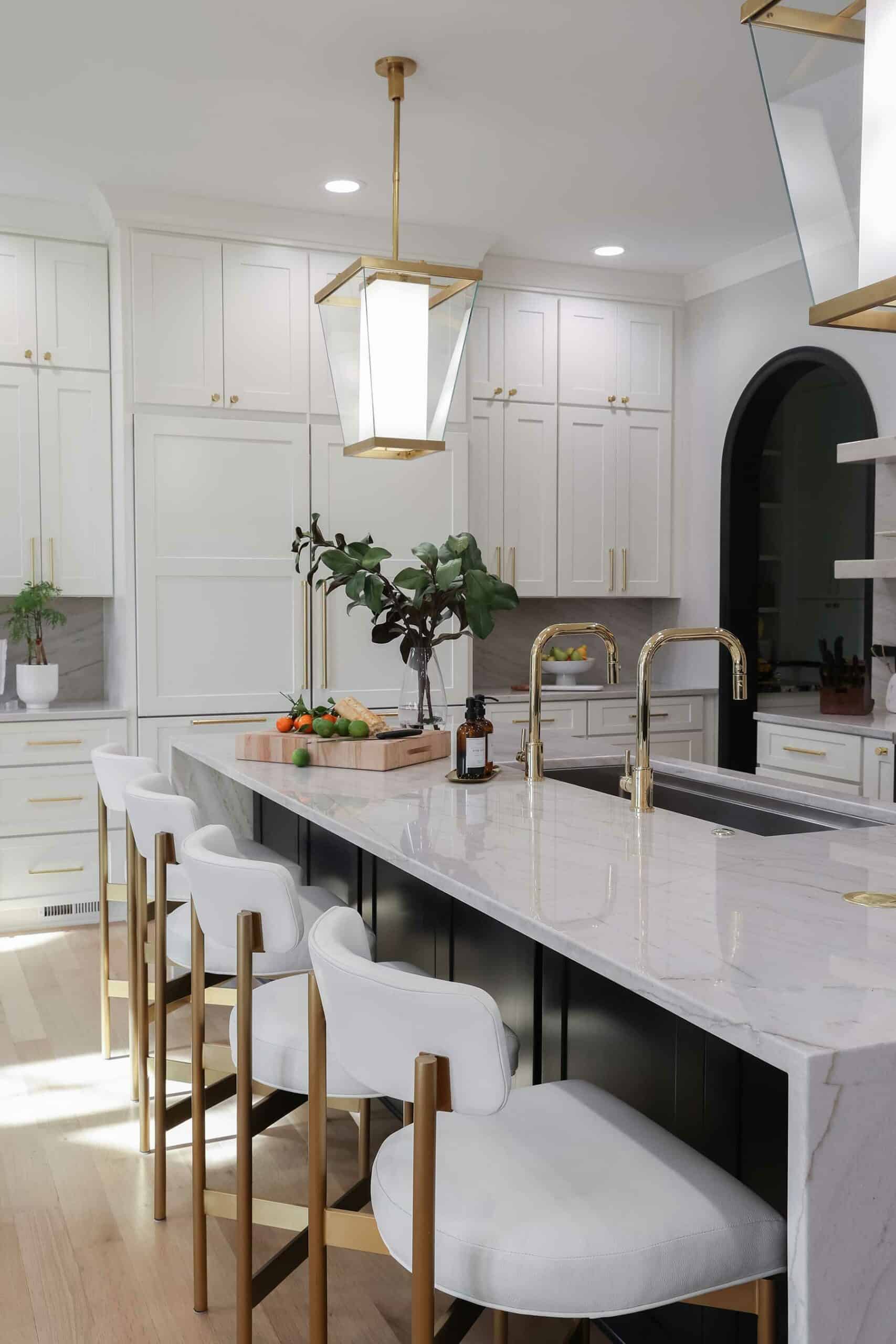 A soured kitchen enjoys a refreshing twist on glam style and functional upgrades.