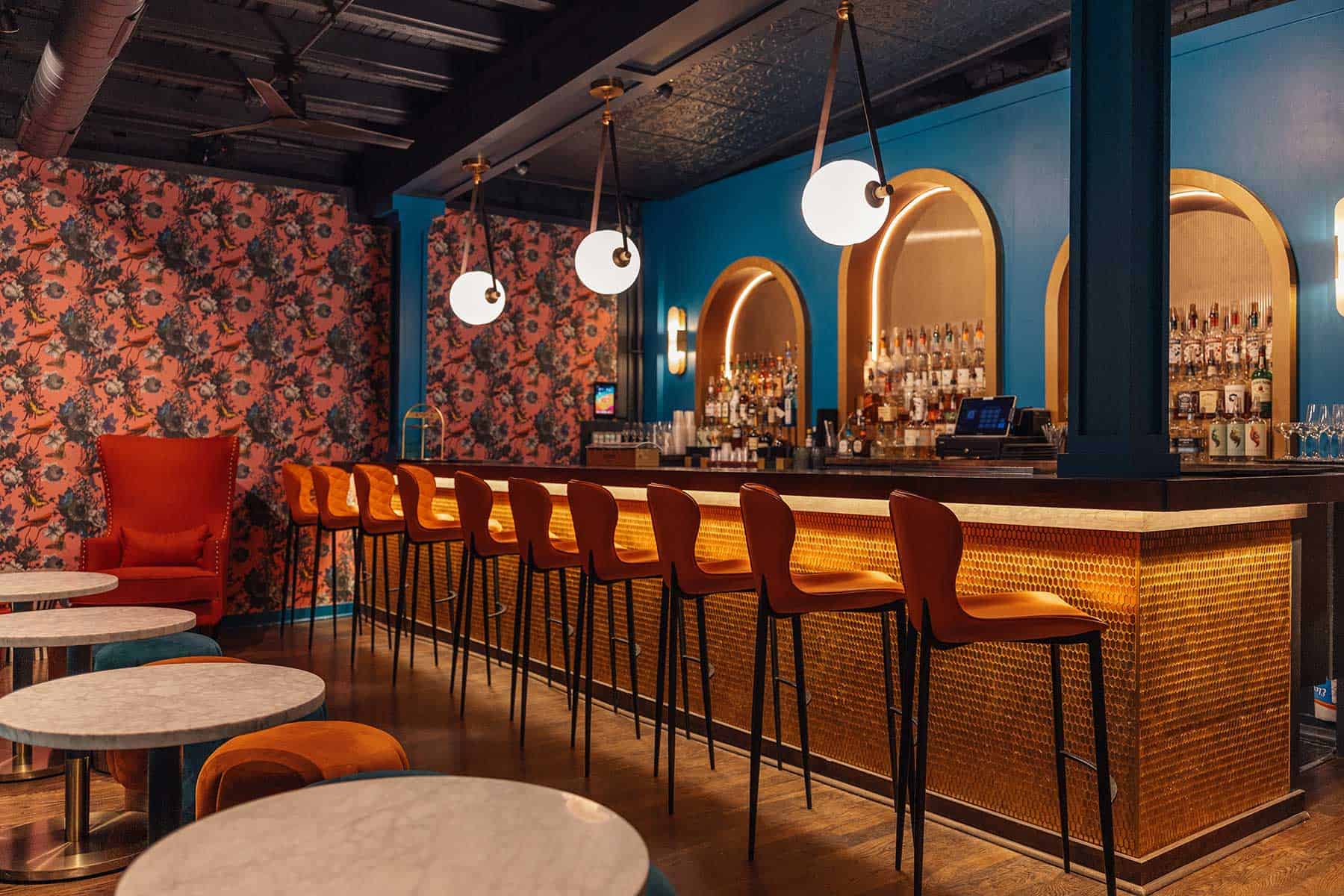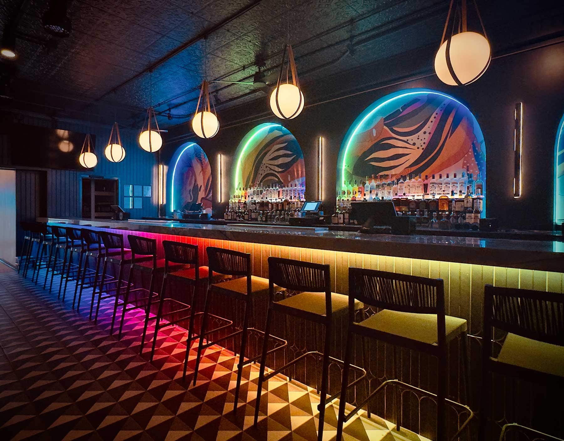 Co-designed by Will Brown and Abraham Colone, Q KC’s bold, unapologetic aesthetic brings to life co-owners Brett Allred and Lance Pierce’s vision for a safe, welcoming space for the local LGBTQ+ community.