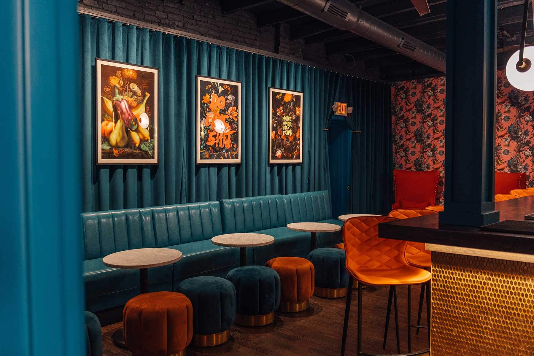 An event pro’s lower-level lounge struts its stuff with moody, Italian-inspired boutique hotel bar vibes.