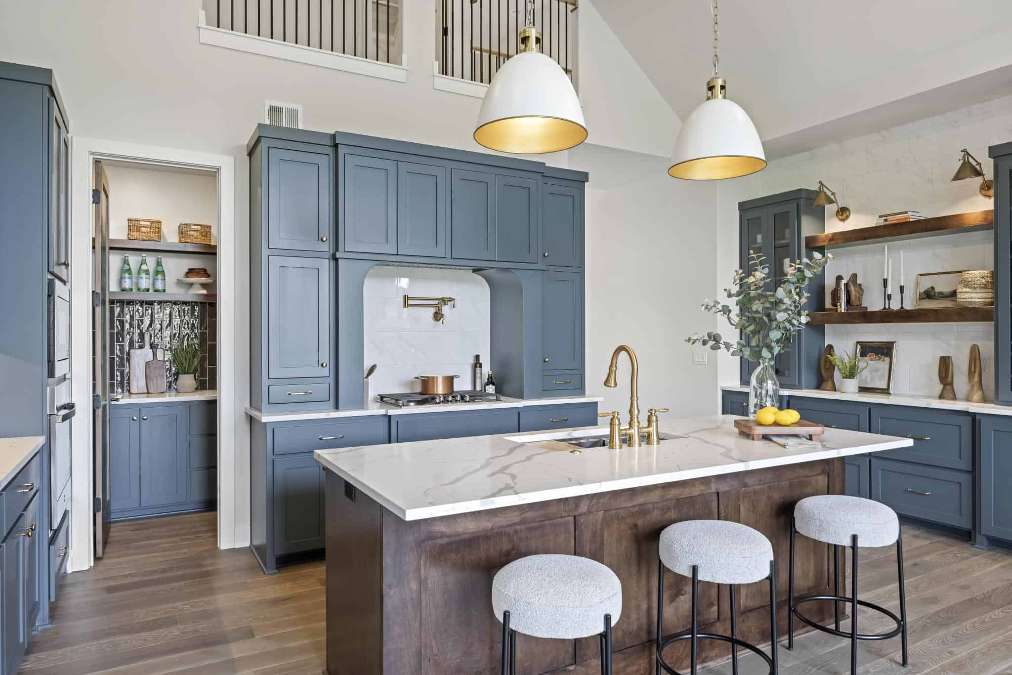 As one among four other model homes featured in the community’s model row, this home needed to stand out. Its classic, family-style floor plan was envisioned to be timeless yet fun. The house is spacious and has abundant natural light, so the design team brought in complementary elements that would feel warm and inviting at the same time. The overall aesthetic is one that will age well, even though it still incorporates color that reflects the trending palettes of the moment.