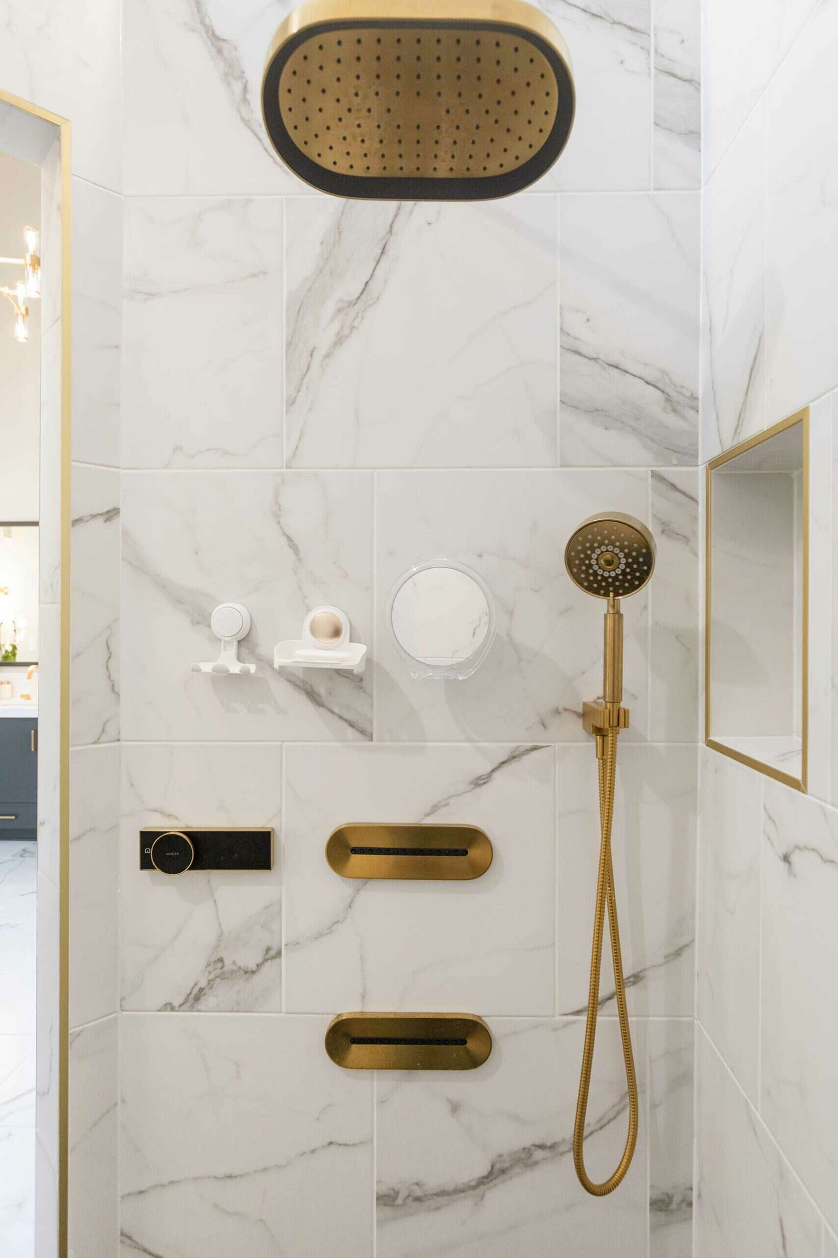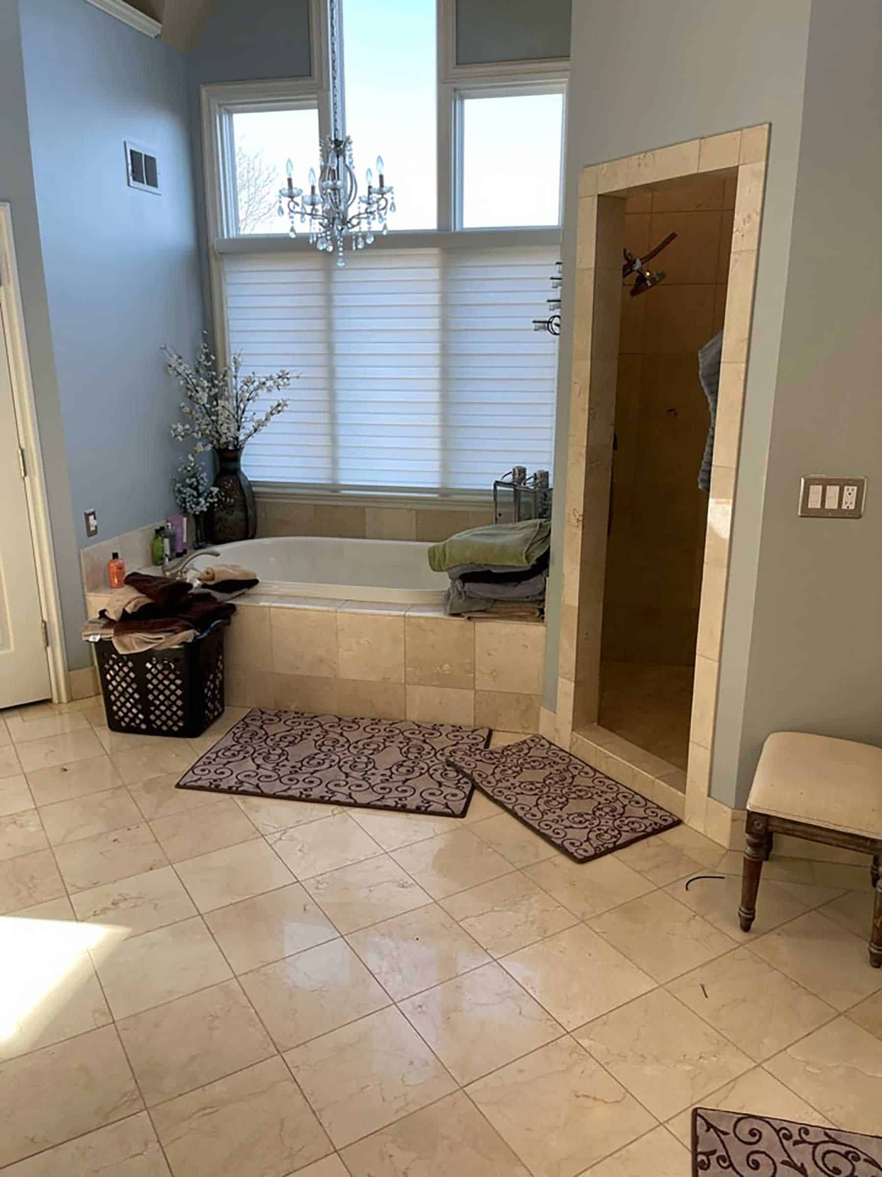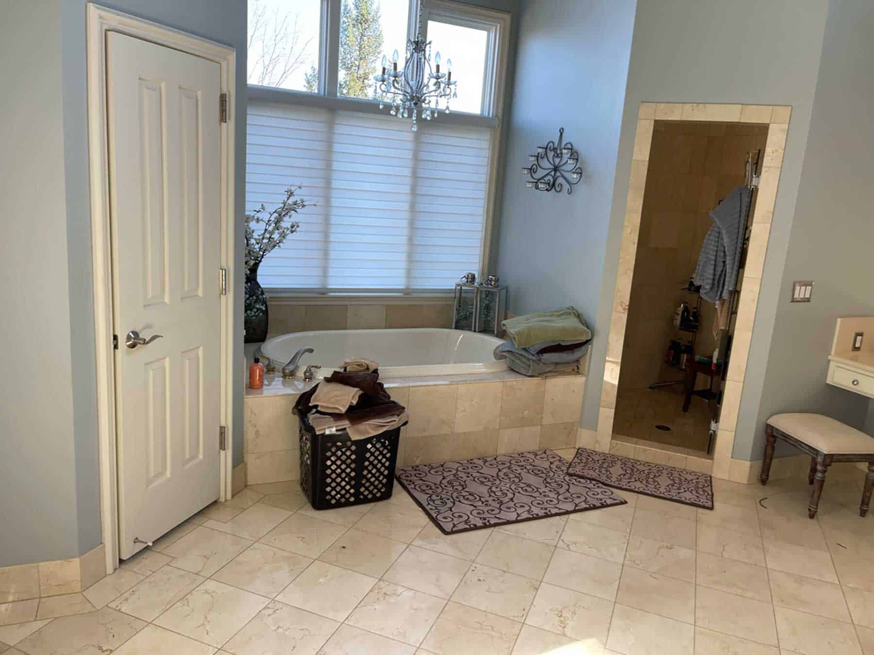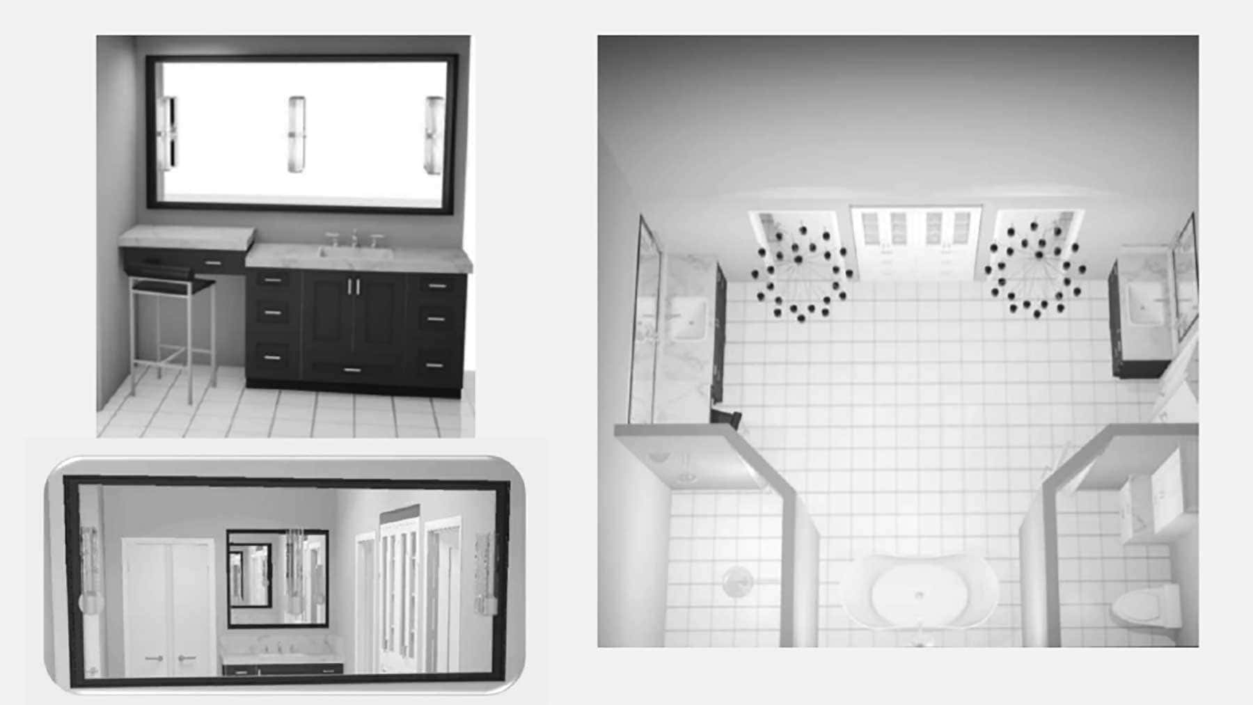 KCBR’s clients envisioned a stunning, elegant sanctuary to unwind in after a long day. Whether it was working with various flooring materials or the location-specific items their clients requested, the team devised clever solutions to create the bathroom of their clients’ dreams. During construction, KCBR discovered that the existing mortar bed had to be removed, so they needed a solution that provided a uniform floor level. To achieve this, their team framed the bathroom flooring to match the bedroom and closet. Another obstacle was the freestanding, air-jetted chromatherapy and aromatherapy bathtub. Ensuring the tub was powered and running properly relied on finding the right location to house the mechanical components. The original plans placed the tub’s mechanics too far away. Therefore, to avoid needing an extension hose and affecting the tub’s performance, they moved the motor and pump to a more suitable location.