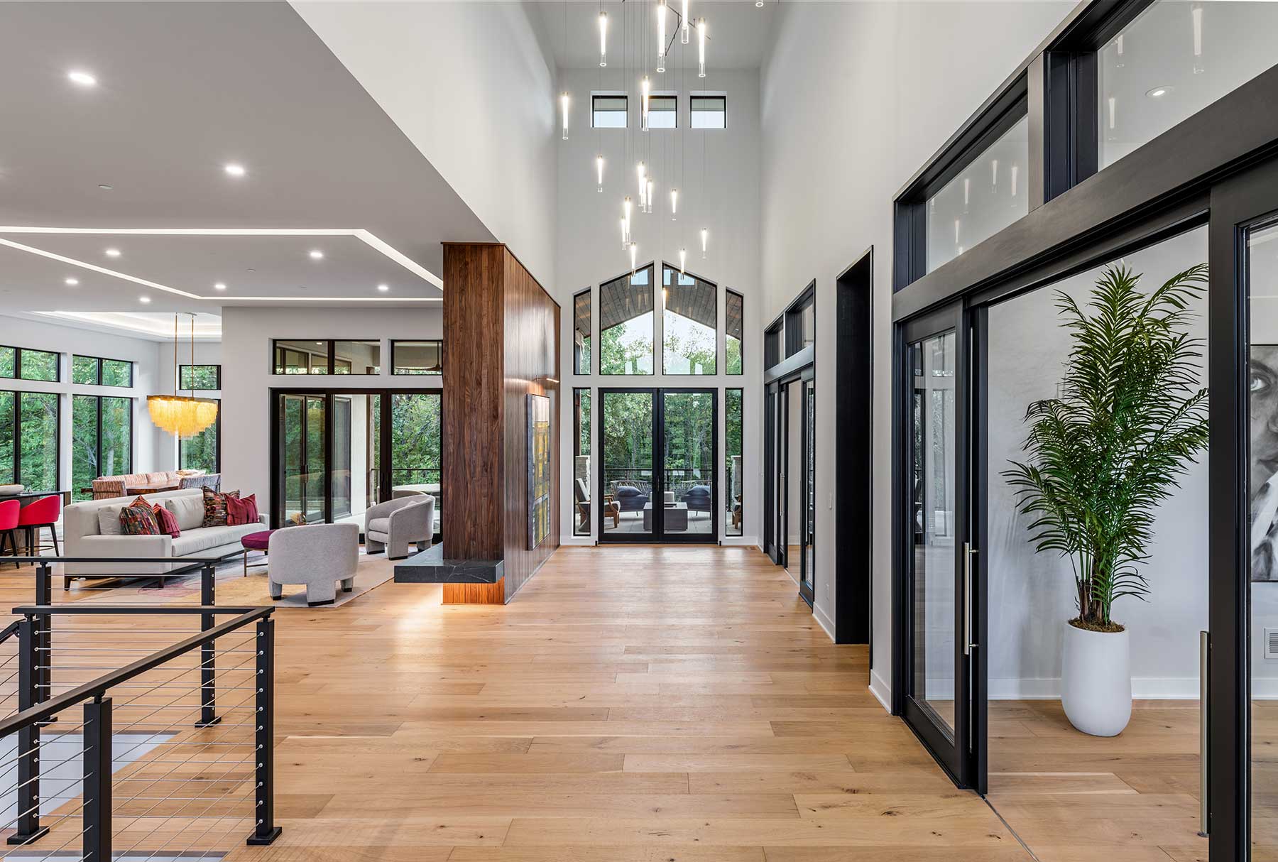 The team’s thoughtful design approach allowed more opportunities for large, scenery-facing windows on the back of the house. Their approach also ensured the home’s present and future ability to accommodate accessibility and multi-generational living needs by incorporating an elevator and an additional first-floor bedroom.