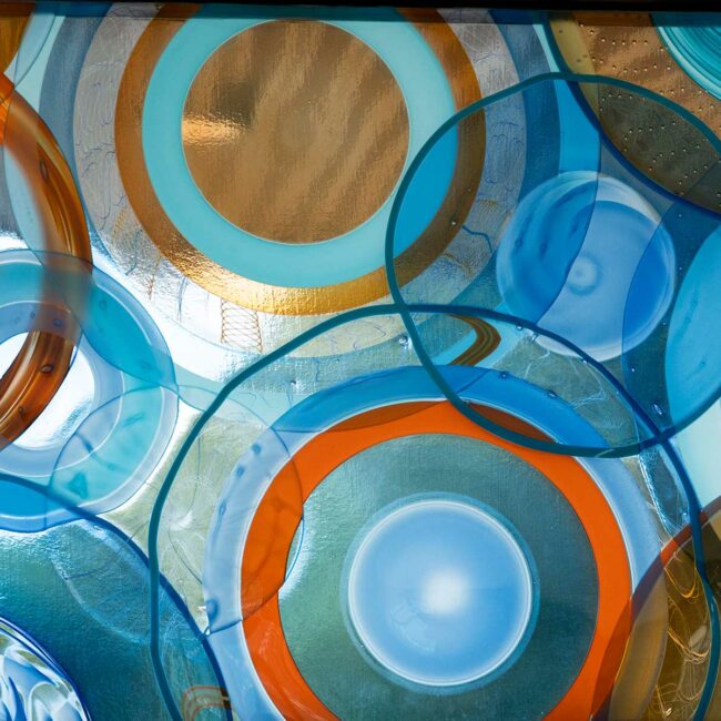 Commercial Design Flooring Is Art and a Gallery to Prove It The project team’s vision for the featured artwork at Leawood Aquatic Center was to create blown-glass art that reflects