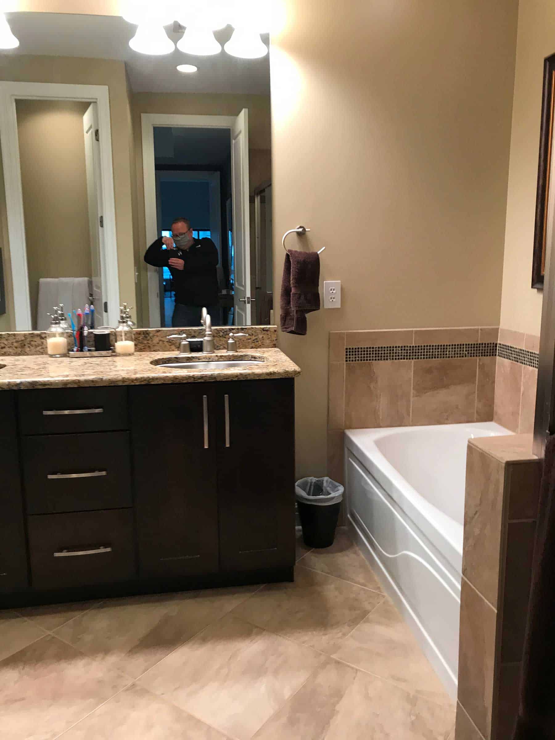 Looking to remodel a suburban-like bathroom, the homeowners hired the project team to transform their condo’s primary bathroom into an elegant, contemporary space commensurate with the rest of the home. With the multi-story condo surrounded by neighboring units, the remodeling team’s work was confined to the space, with little room for moving infrastructure, making dramatic change difficult.