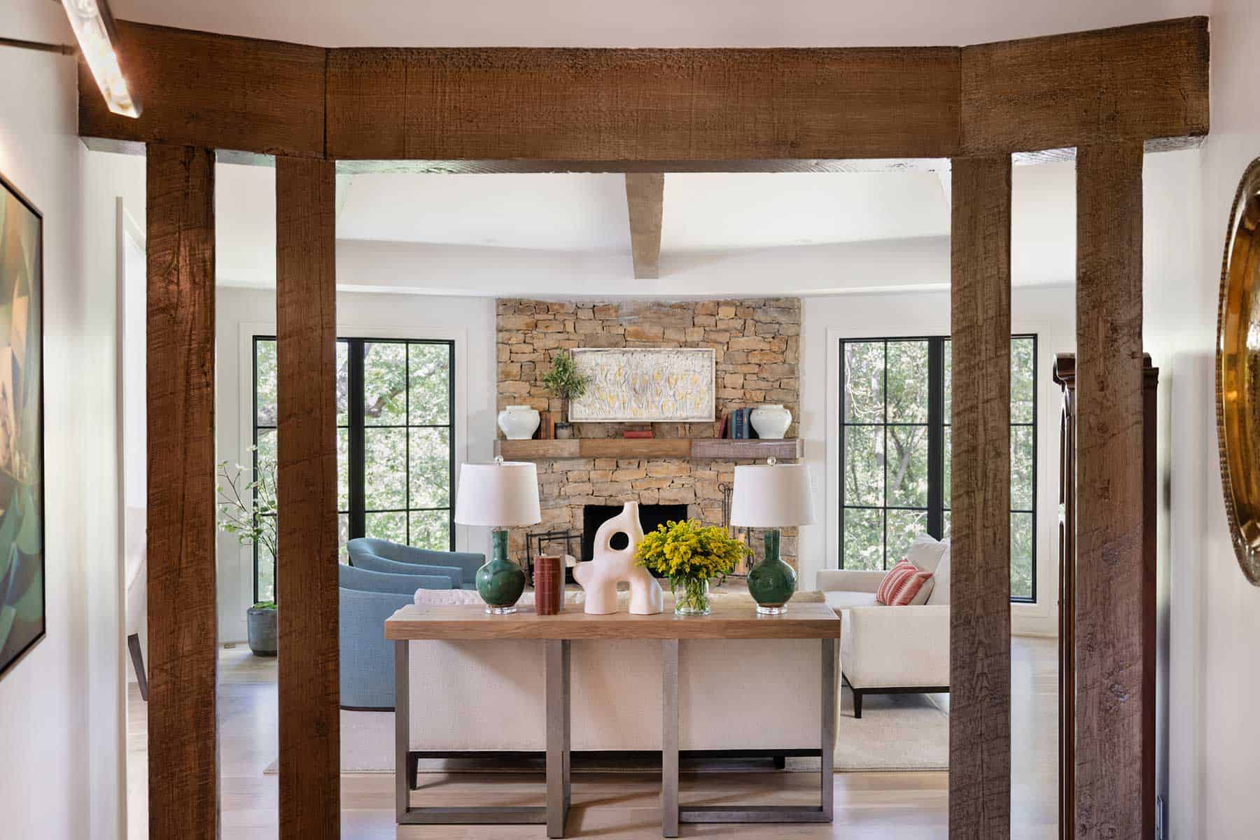 The project team kept the original step down into the family room that transitions from the dining and music rooms while maintaining the open floor plan. The original space where the grand piano sits—once a dim seating area and office space—now feels airy and inviting thanks to added windows and the absence of the hallway wall leading to the primary bedroom. That room was also altered within the existing footprint.