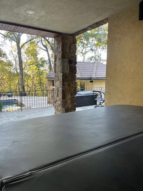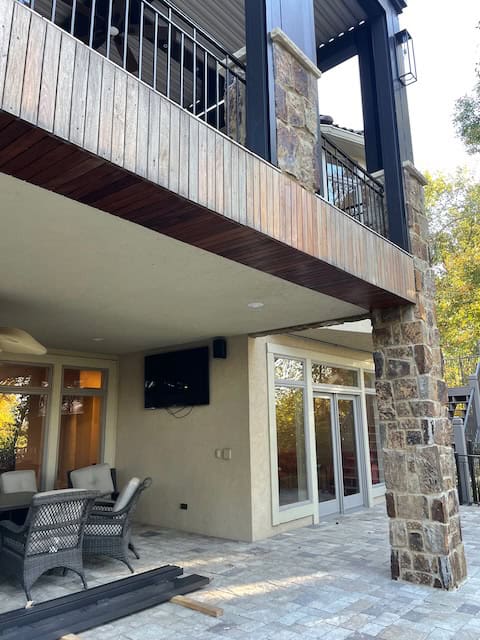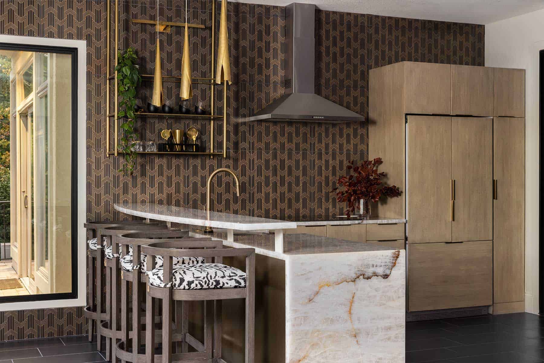 When picturing their new home, the client wanted a Hollywood Glam experience for entertaining friends and relaxing with family. They also wanted to transform the seldom-used outdoor space under an existing porch into a full kitchen with easy access to and from the pool.