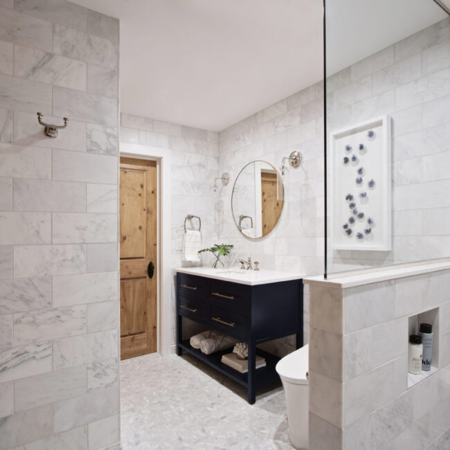 Bath Spa-like Guest Bath During this remodeling project, the project team was charged with creating a spa-like atmosphere in the homeowners’ guest bathroom, all while