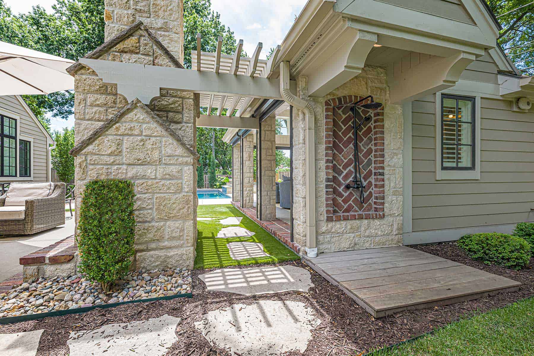 Situated in the charming, established neighborhood of Prairie Village, this outdoor living transformation is a masterclass in sophisticated design within a compact footprint. What began as an unremarkable backyard evolved into a refined oasis that balances both leisure and functionality for a growing family.