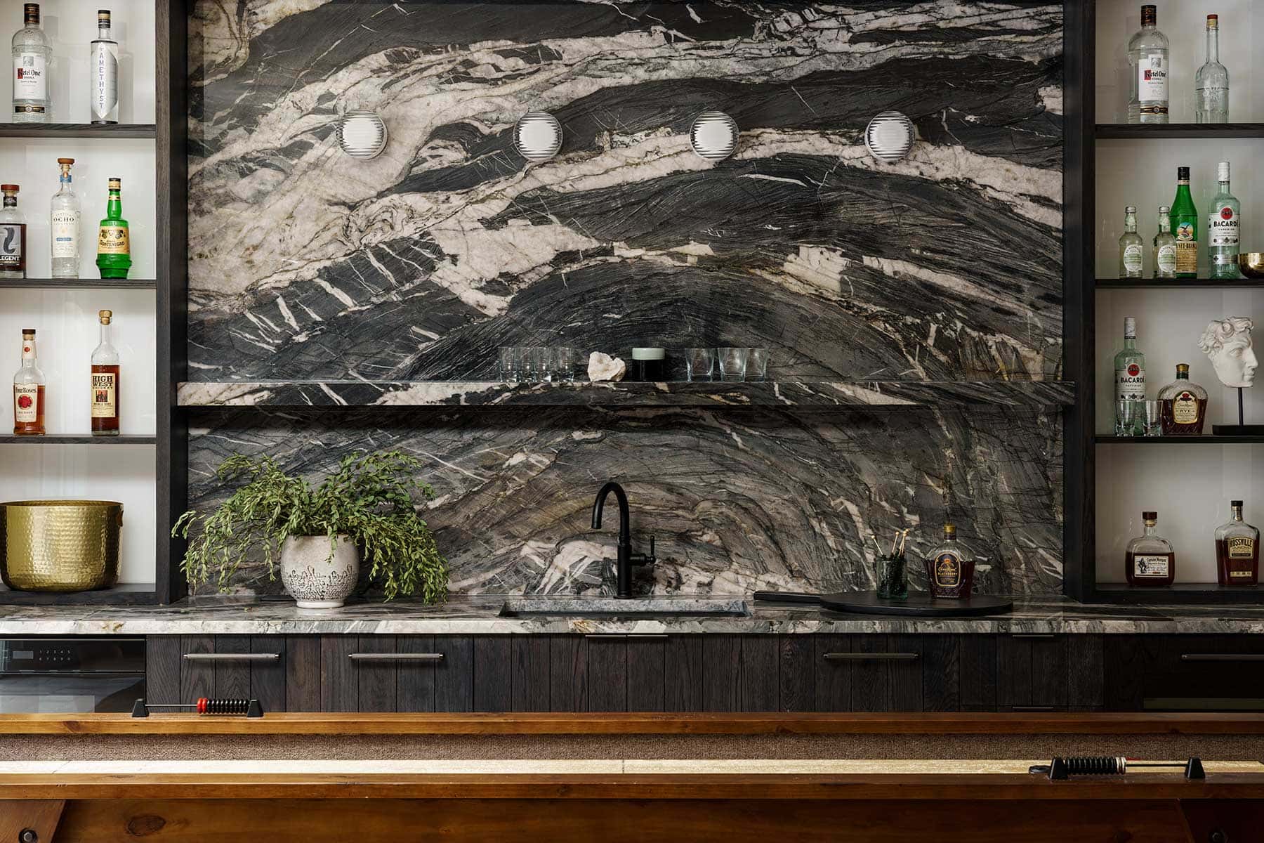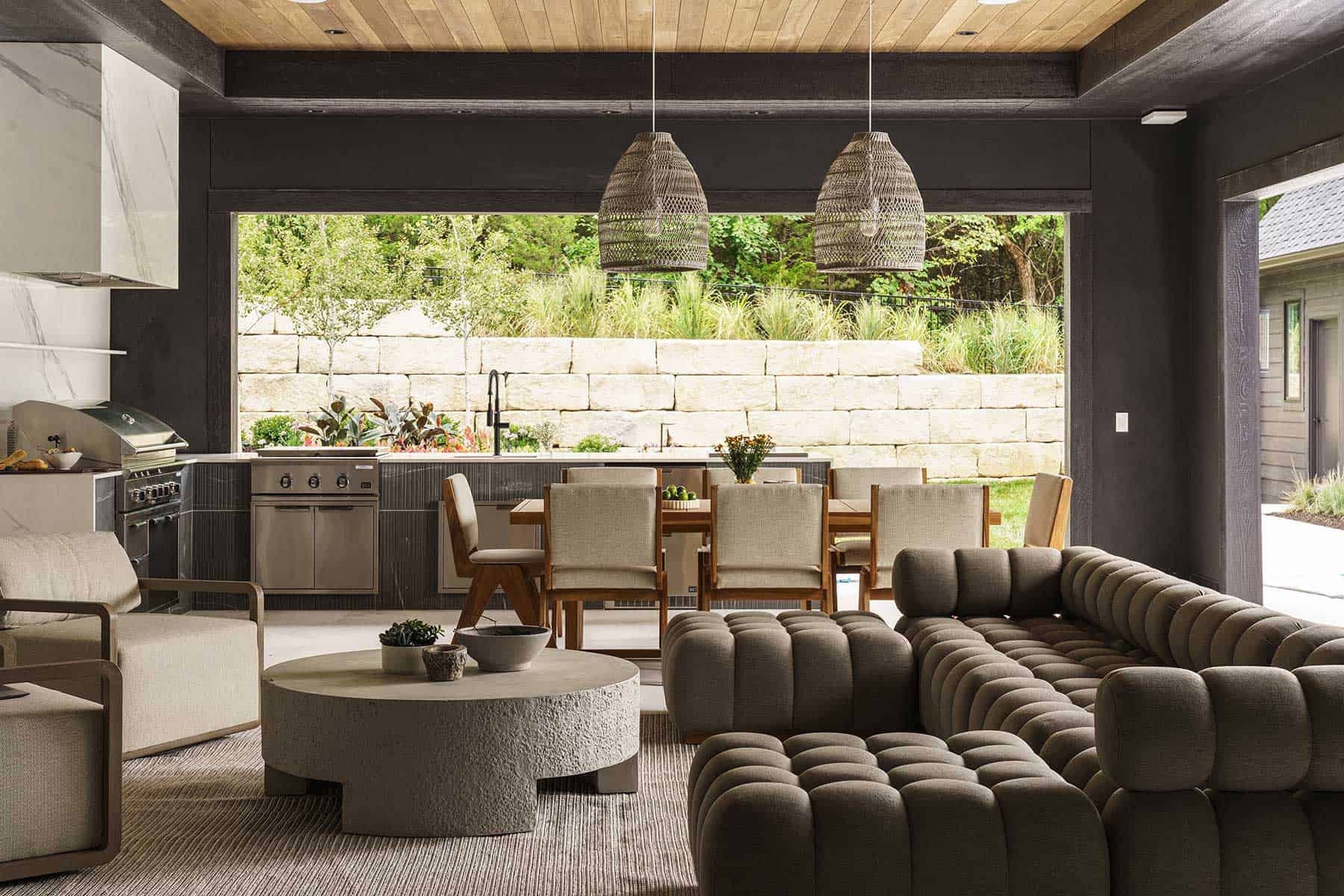 Appliances: Ferguson Home, featuring Fisher and Paykel/DCS Countertops: Dimensional Stoneworks; Triton Fireplace(s): Midwest Fireplace; Complete Home Concepts Furnishings: Amethyst Home Windows: Pella Landscaping: EPIC Landscape Productions Lighting: Visual Comfort Smart Home Automation: Kinkade Home Theater, featuring Control 4 Stone Work: Stonehenge Outdoor Tile: Integrity Tile and Stone Pool and Hardscapes: Stonehenge Outdoor Retaining Walls: Amborn Stone Millwork: KC Millwork and Millwork 33 Front Door: Pleasant Valley Millworks Sauna: Bison Hut Cabinets: Wilson Custom Cabinets Trim Carpentry: Acopa Custom Trim