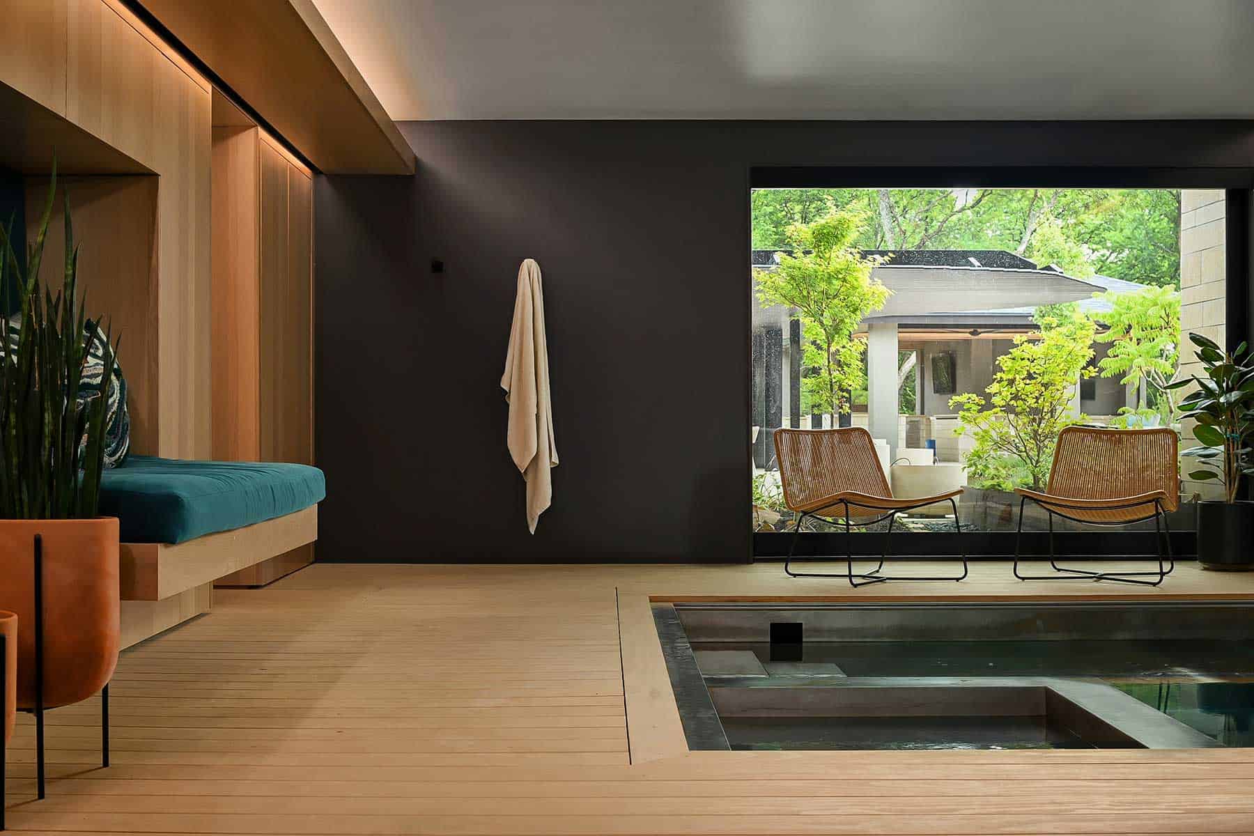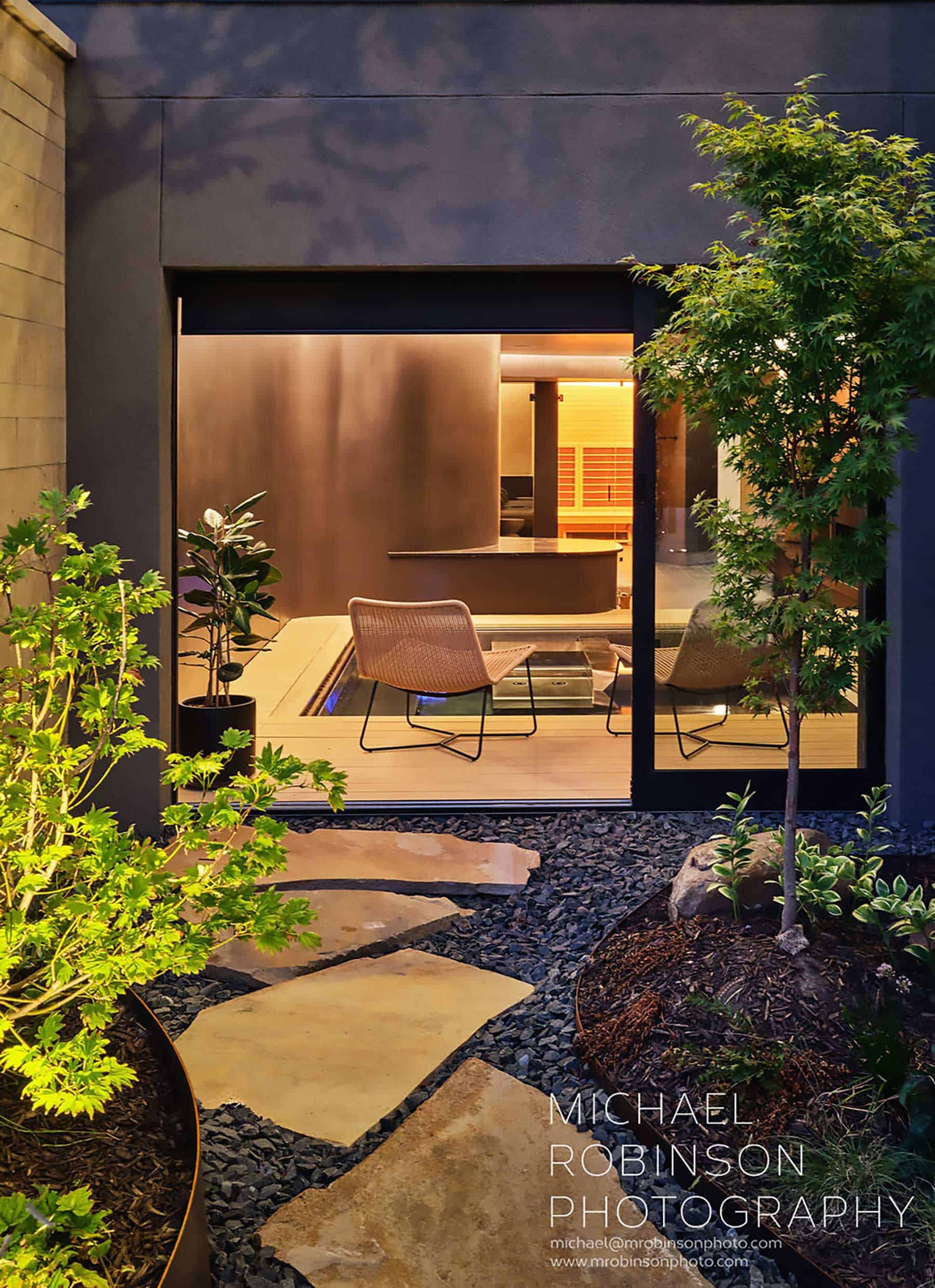 Design Detail Hawk Heights: Casework/ Fireplace/Stair Assembly At Hawk Heights, these coordinating elements serve as both a functional solution and a commanding design statement. This custom feature unifies the condominium’s