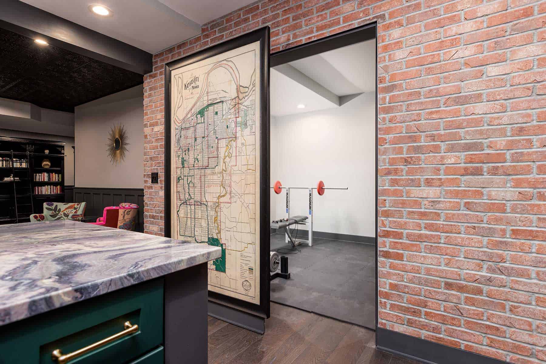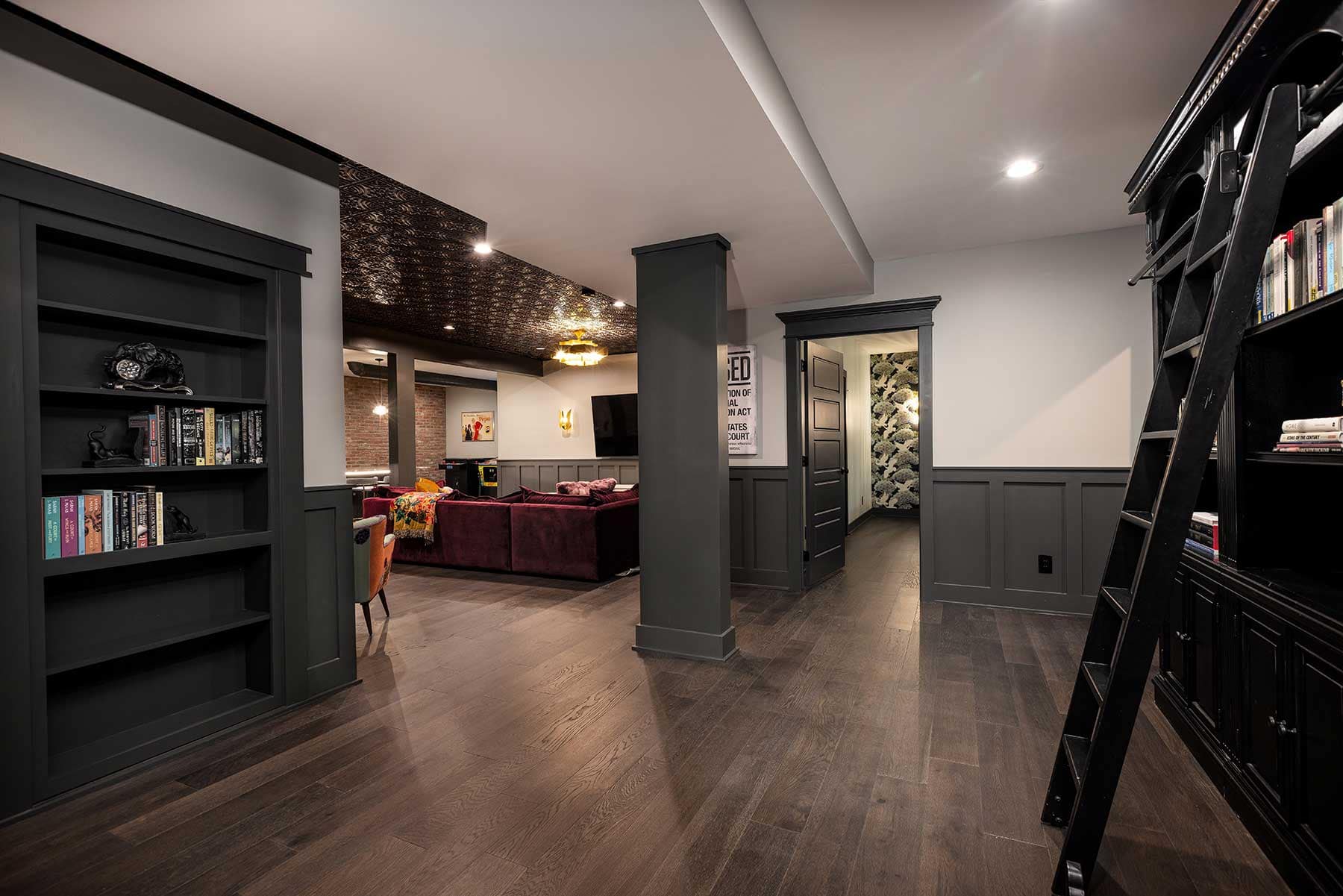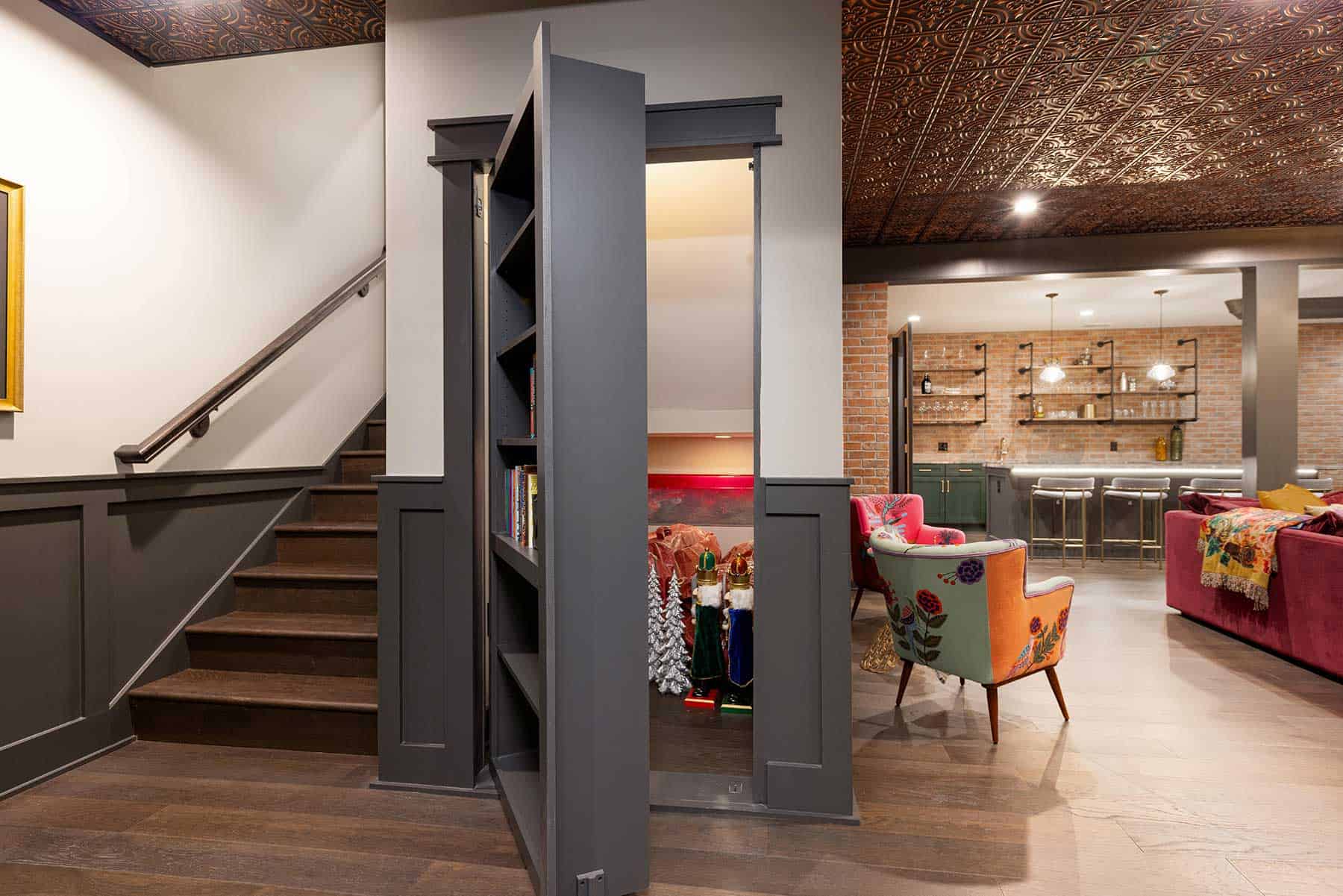 This basement remodel masterfully blends vintage elegance with contemporary living. Inspired by the Roaring ’20s, the space features hidden doors, rich textures and a moody bar reminiscent of a classic speakeasy. A carefully curated arcade area brings in nostalgia, while a home gym ensures balance between entertainment and wellness.
