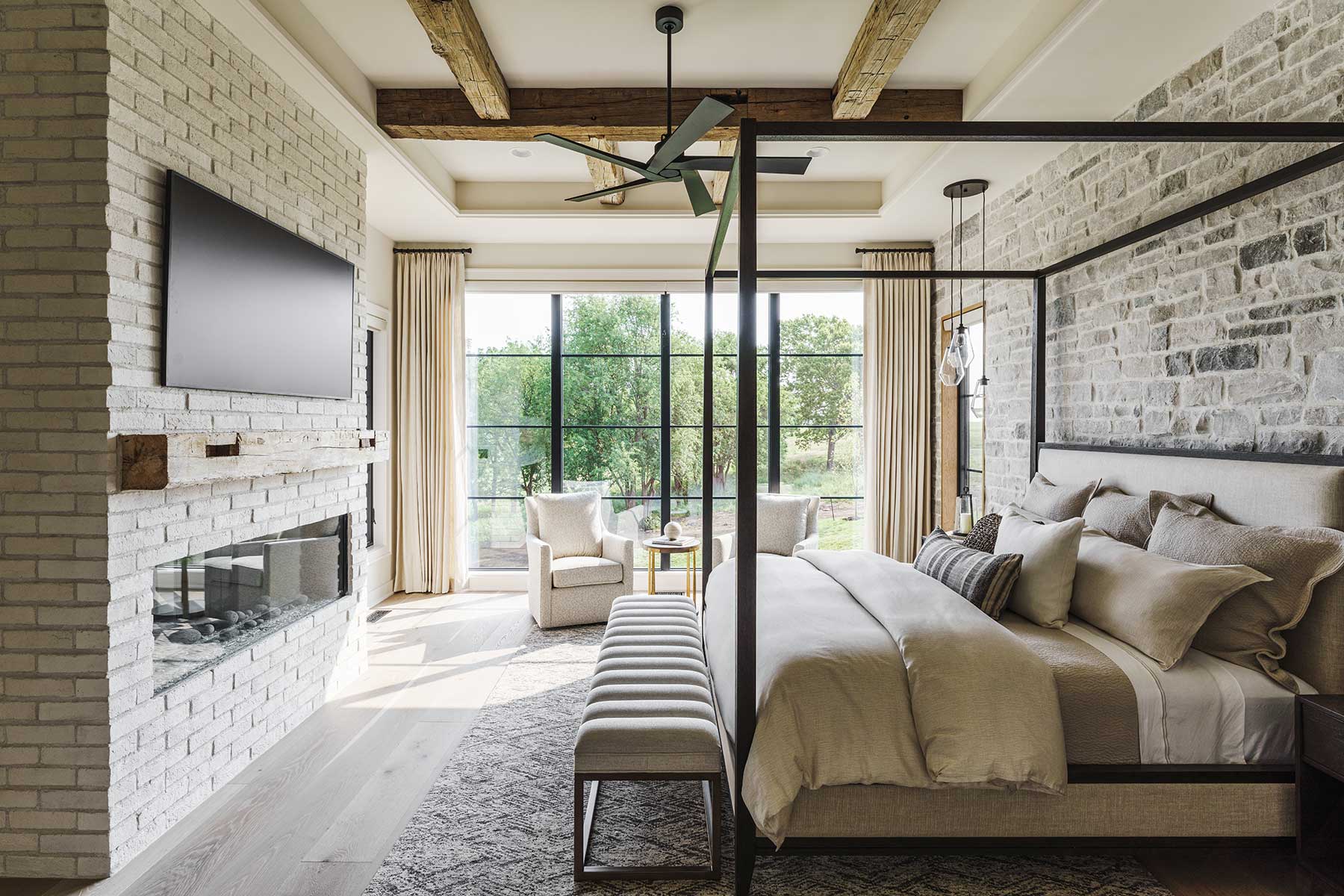 Balancing modern design with rustic textures, the home incorporates white oak, walnut and reclaimed barn beams. These 100-year-old beams, each weighing 800 pounds, were carefully installed to bring warmth and authenticity to the space. Thoughtfully planned lighting and layered furnishings enhance the atmosphere, ensuring that each space feels welcoming. With breathtaking views, expertly curated materials and intentional design, the space embodies the art of gathering and the beauty of home.