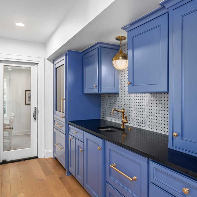 The reconfigured layout now offers a natural flow, beginning with a grand entryway framed by graceful arches. A sophisticated pantry and prep kitchen complement the spacious new kitchen, while glass partitions lend distinction to the front room, now a refined library lounge. Personal antiques and curated details complete the vision, infusing this home with enduring character and charm.